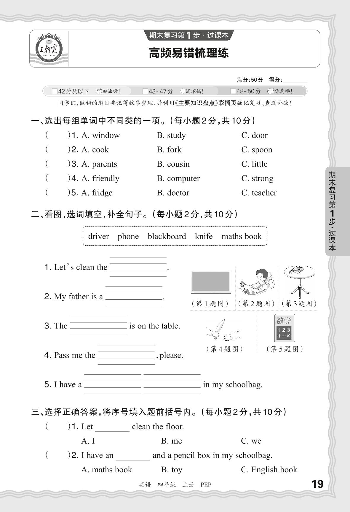 2023秋上册四年级英语人教PEP版 期末过课本·高频易错梳理练