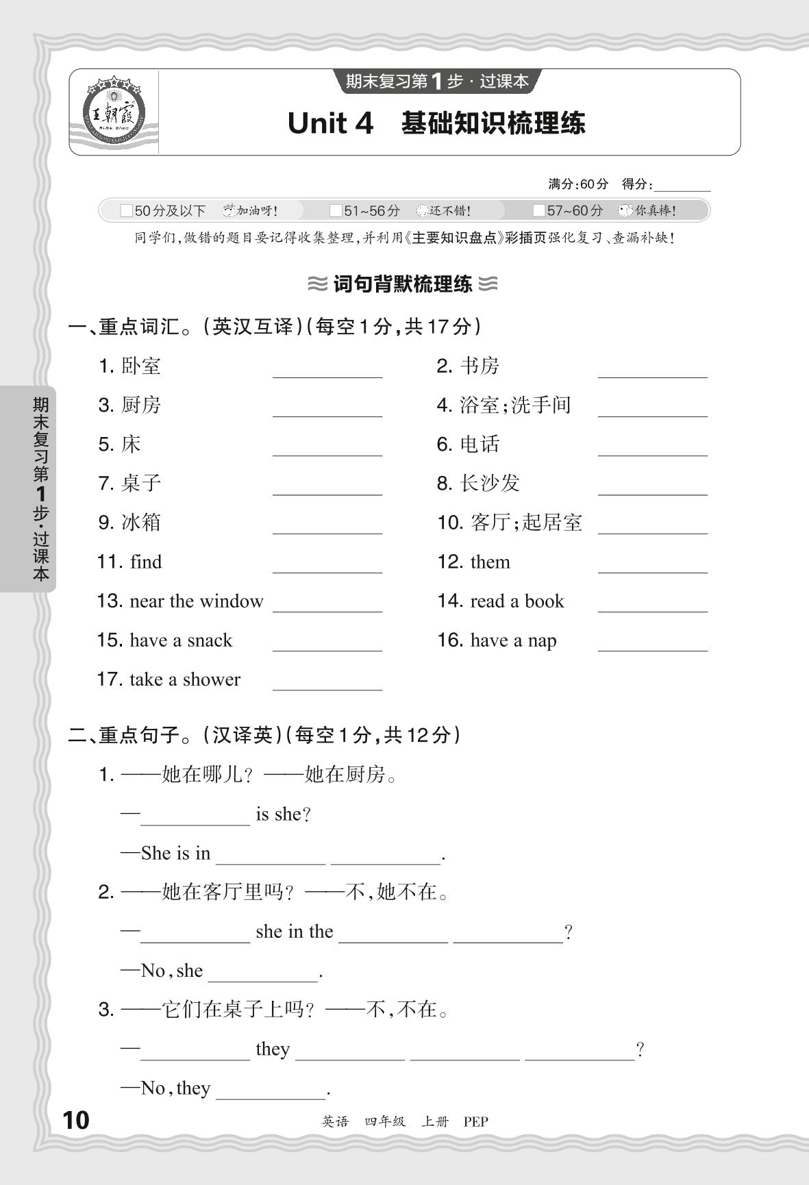 2023秋上册四年级英语人教PEP版 期末过课本·Unit 4 基础知识梳理练
