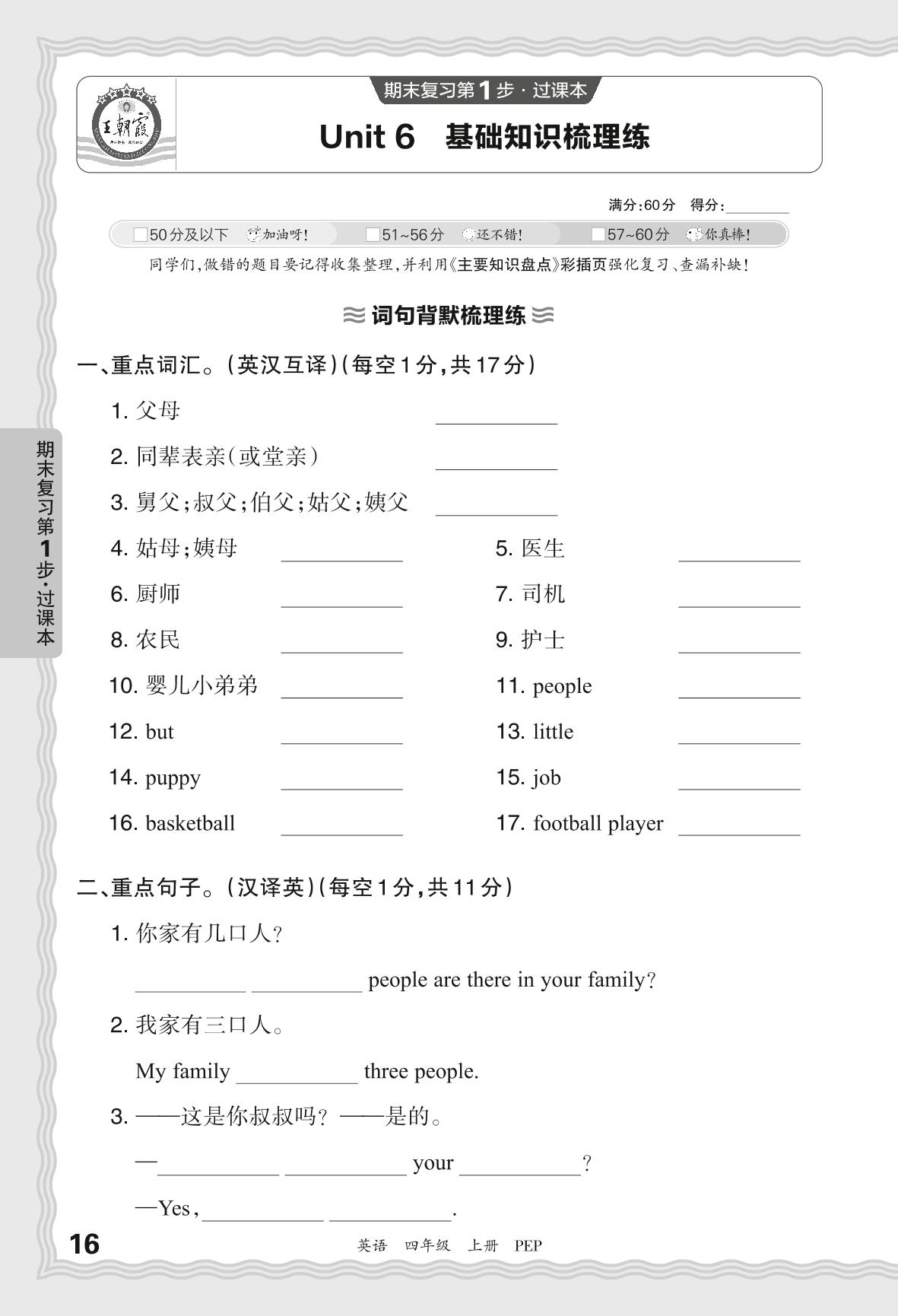 2023秋上册四年级英语人教PEP版 期末过课本·Unit 6 基础知识梳理练