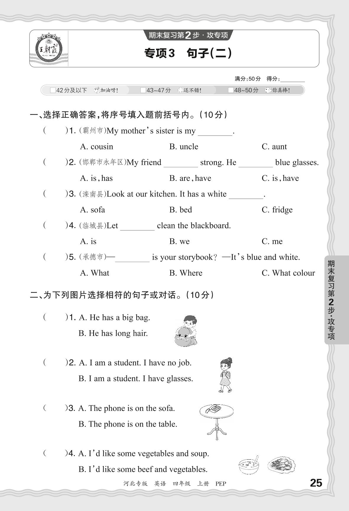2023秋上册四年级英语人教PEP版 期末专项·句子(二)【3】