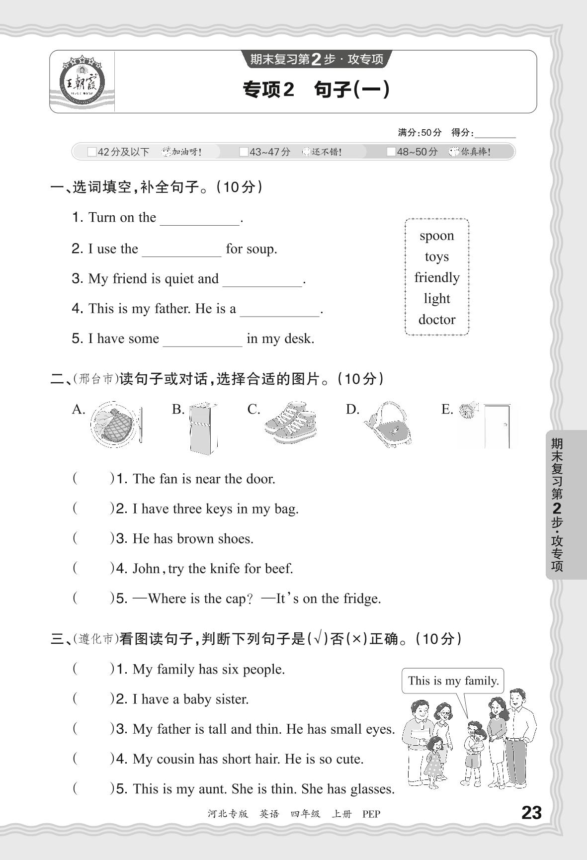 2023秋上册四年级英语人教PEP版 期末专项·句子(一)【2】