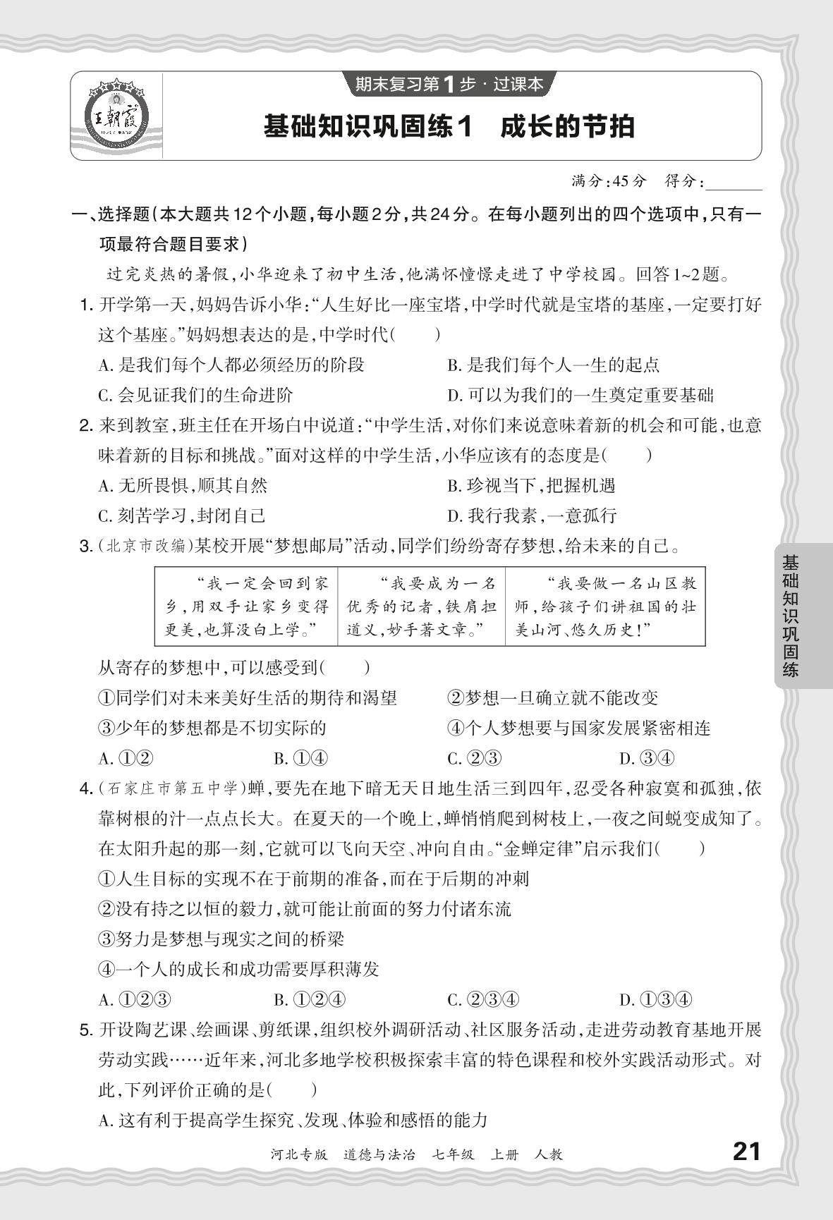 2023秋上册七年级道德与法治人教版 期末过课本·基础知识巩固练 成长的节拍【1】