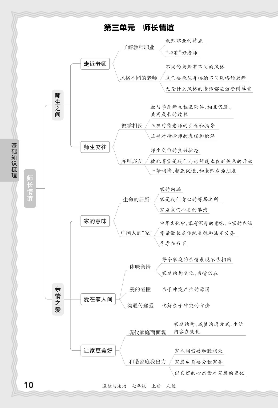 2023秋上册七年级道德与法治人教版 期末过课本·基础知识梳理 第三单元 师长情谊
