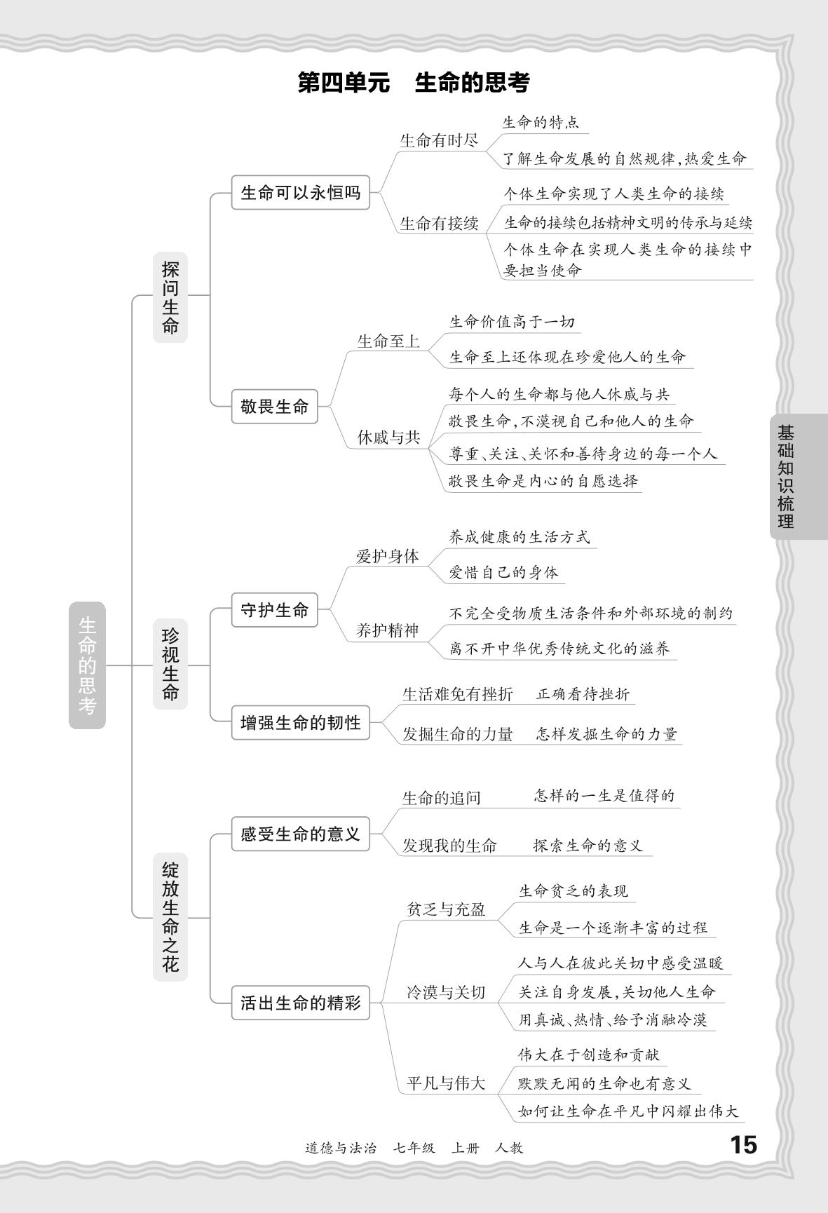 2023秋上册七年级道德与法治人教版 期末过课本·基础知识梳理 第四单元 生命的思考