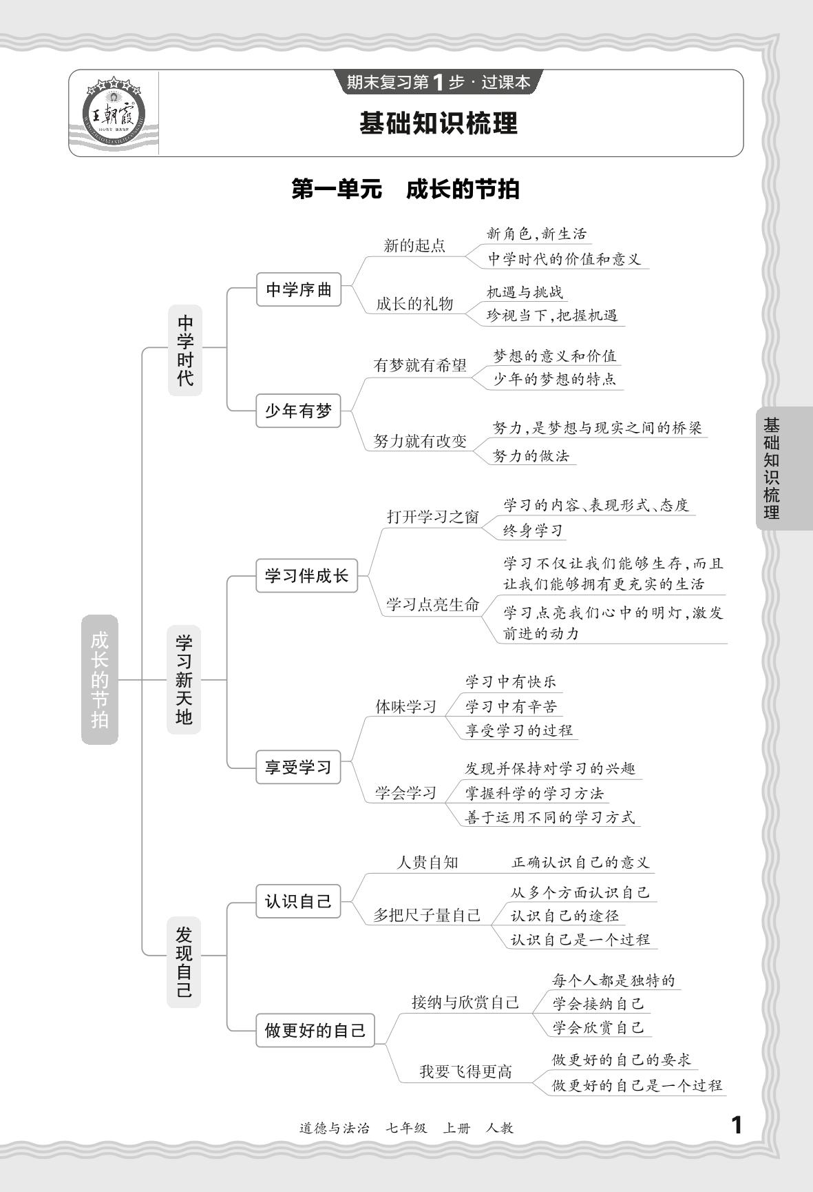 2023秋上册七年级道德与法治人教版 期末过课本·基础知识梳理 第一单元 成长的节拍