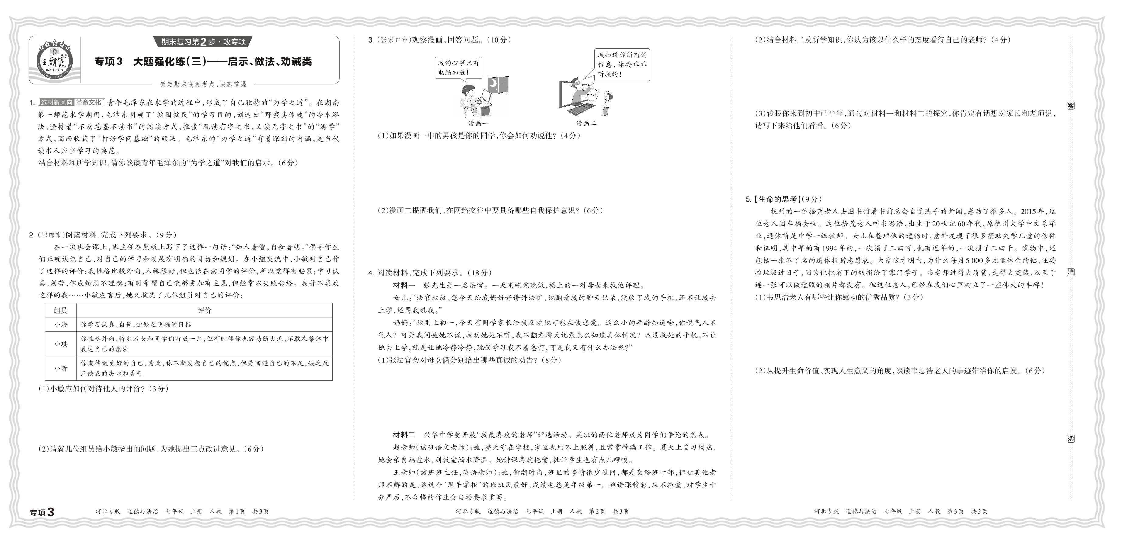 2023秋上册七年级道德与法治人教版 期末专项卷·大题强化练(三)——启示、做法、劝诫类