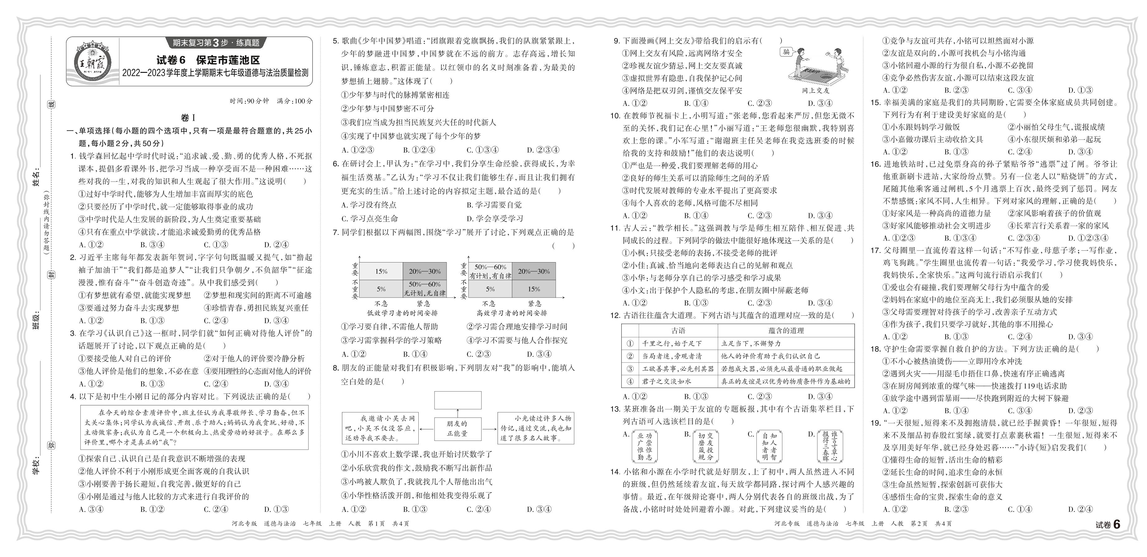河北省保定市莲池区2022—2023学年度上学期期末七年级道德与法治质量检测(人教版)【6】