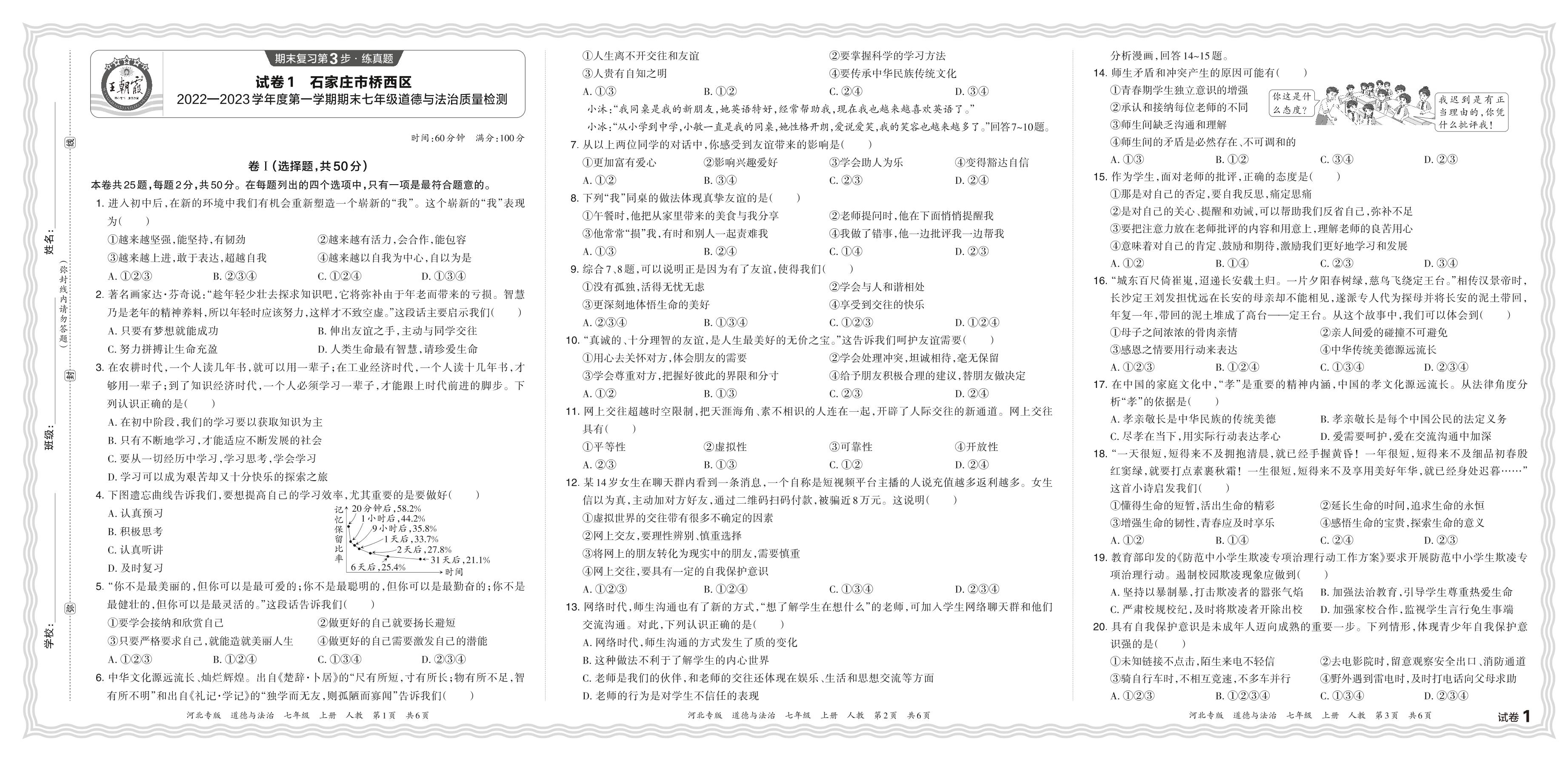 河北省石家庄市桥西区2022—2023学年度第一学期期末七年级道德与法治质量检测(人教版)【1】