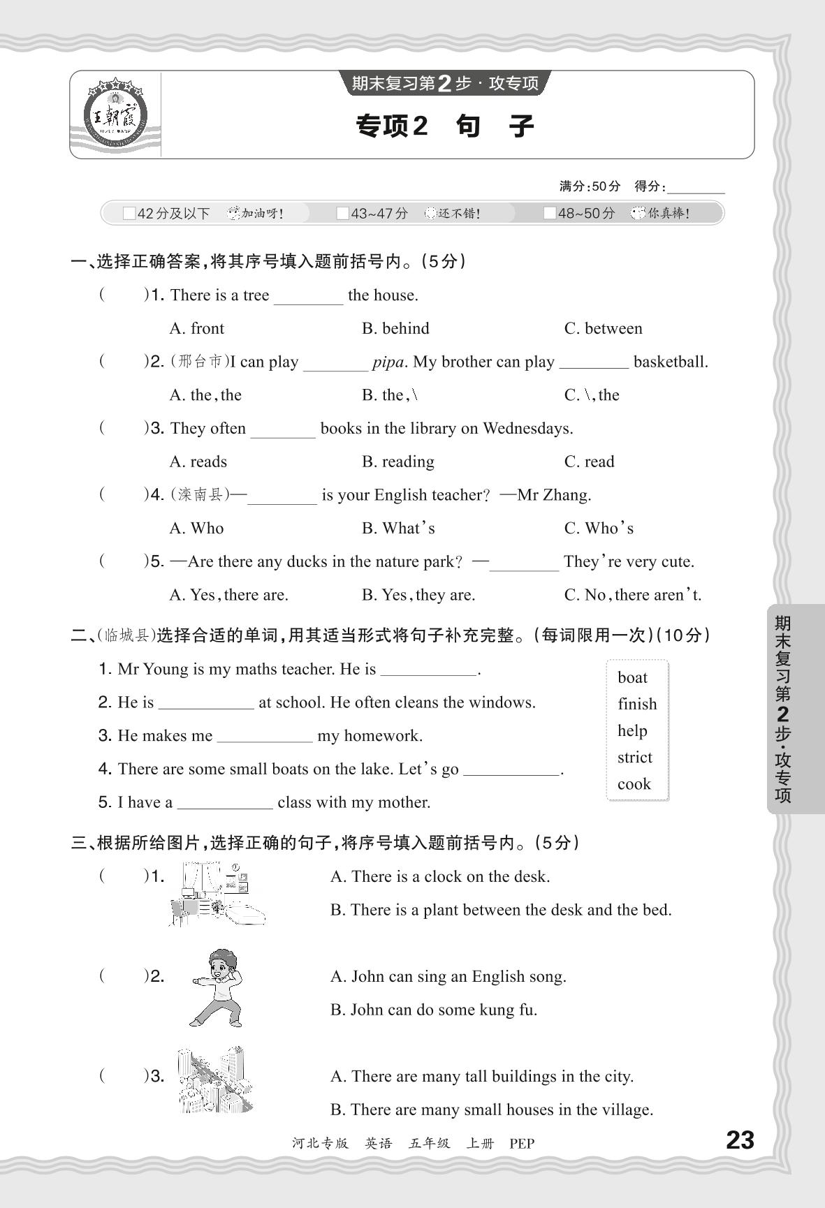 2023秋上册五年级英语人教PEP版 期末专项·句子(一)【2】