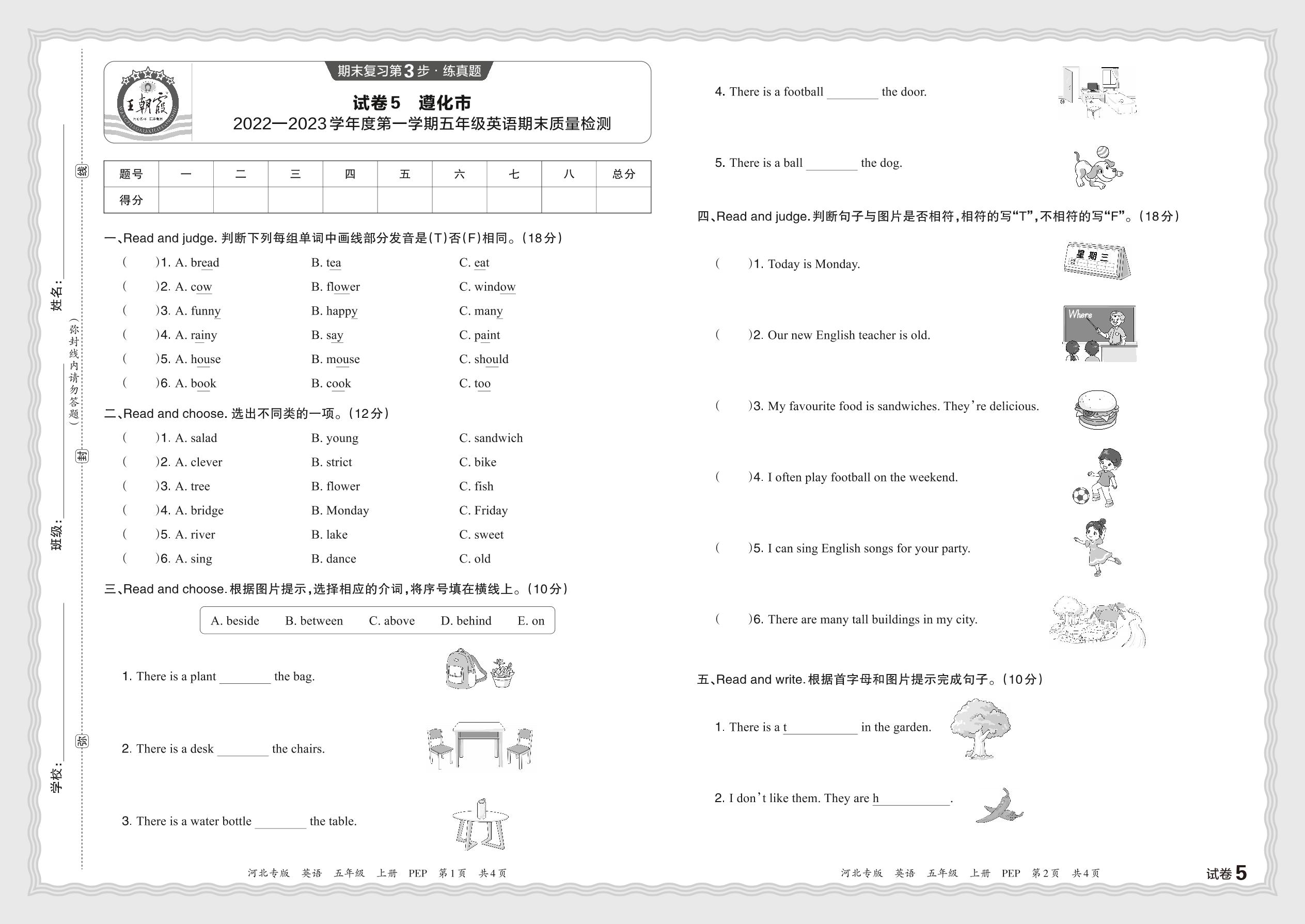 河北省唐山市遵化市2022—2023学年度第一学期五年级英语期末质量检测(PEP版)【5】