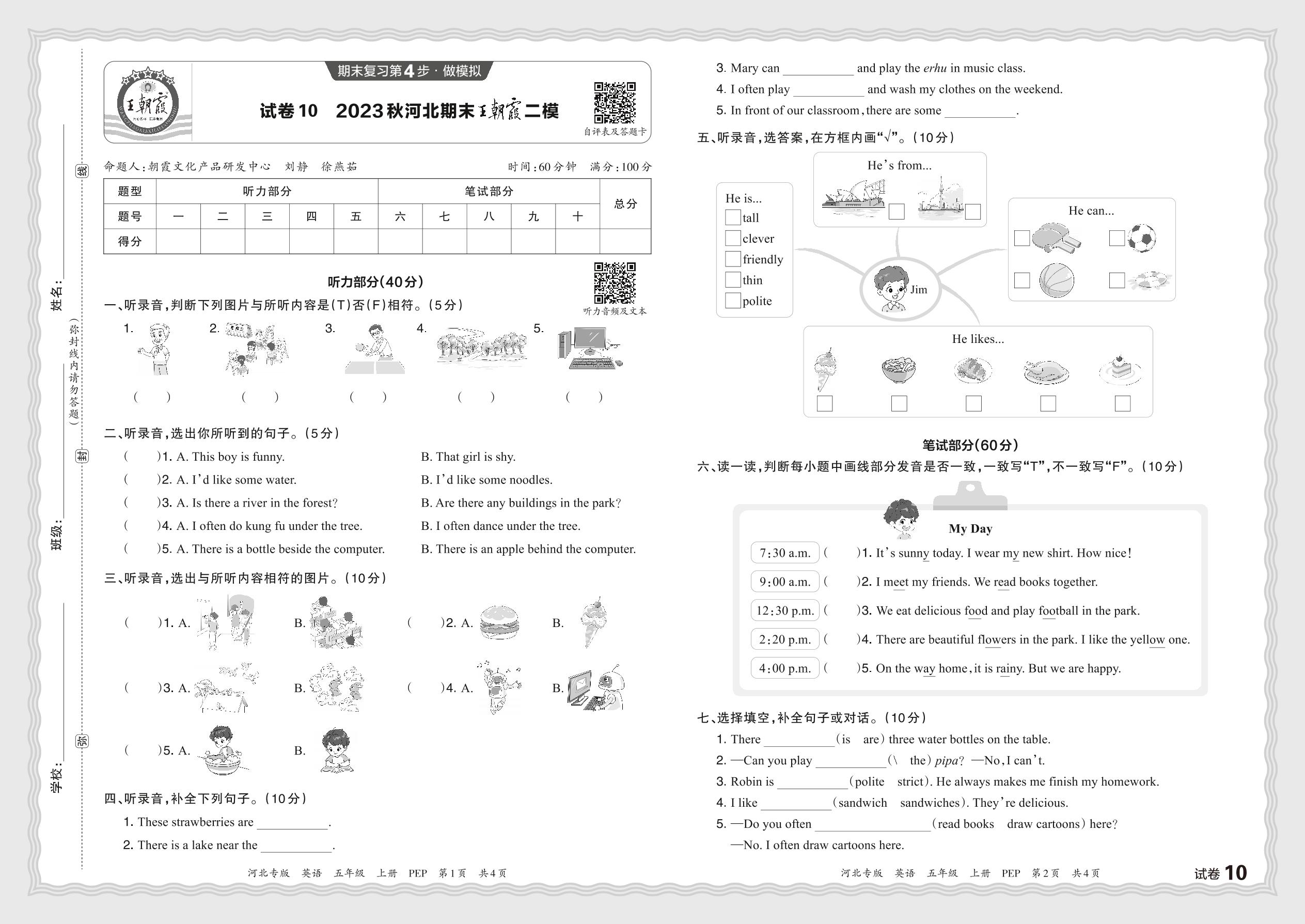 2023秋上册五年级英语人教PEP版 河北期末王朝霞二模