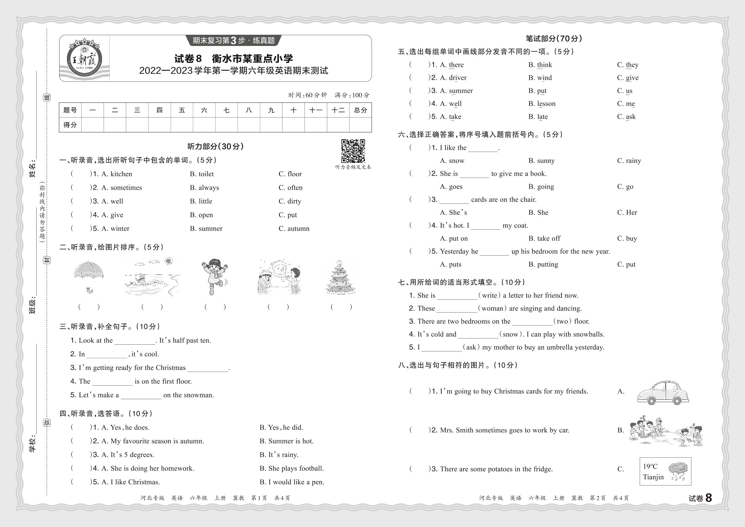 河北省衡水市某重点小学2022—2023学年第一学期六年级英语期末测试(冀教版)【8】