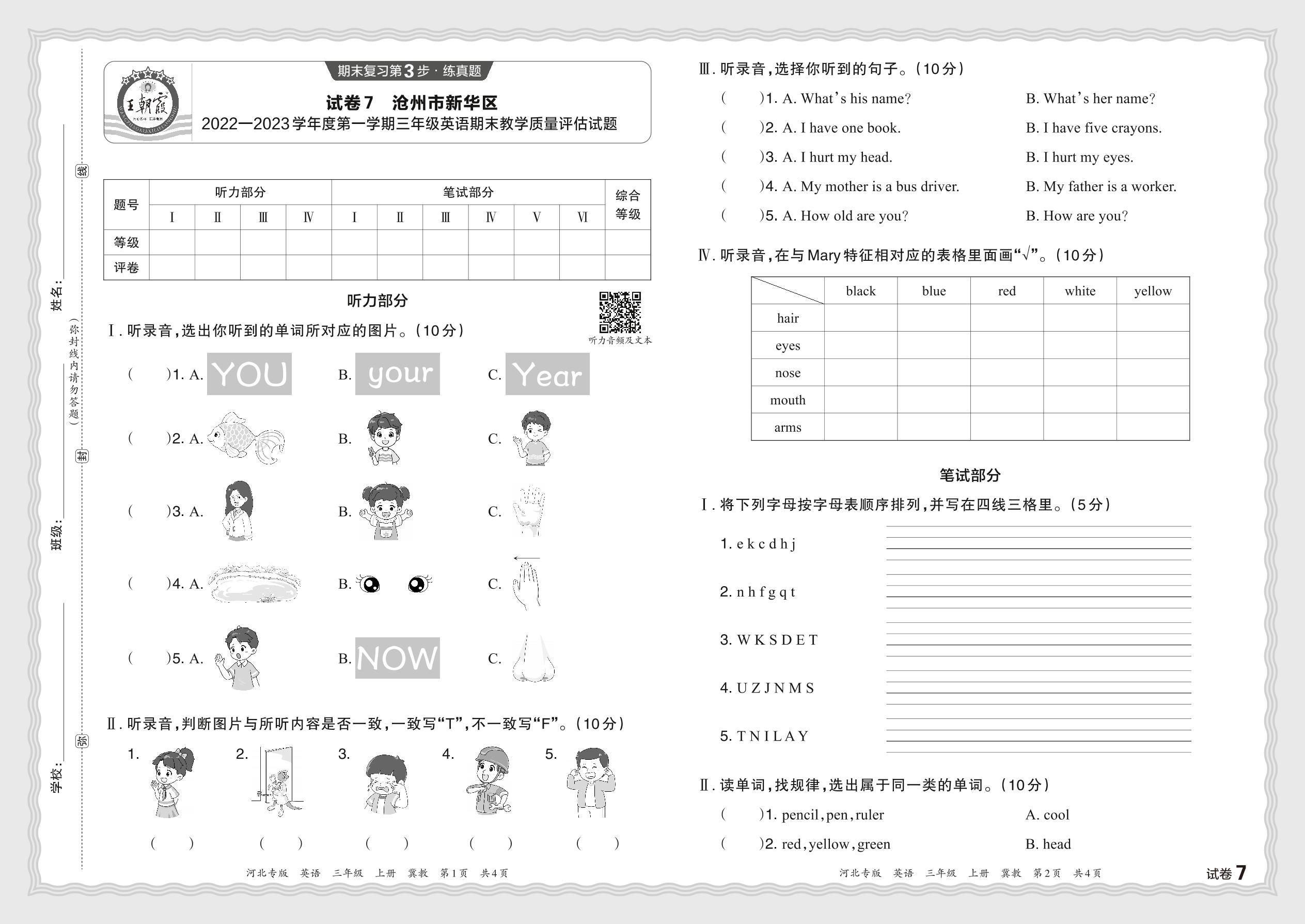 河北省沧州市新华区2022—2023学年度第一学期三年级英语期末教学质量评估试题(冀教版)【7】