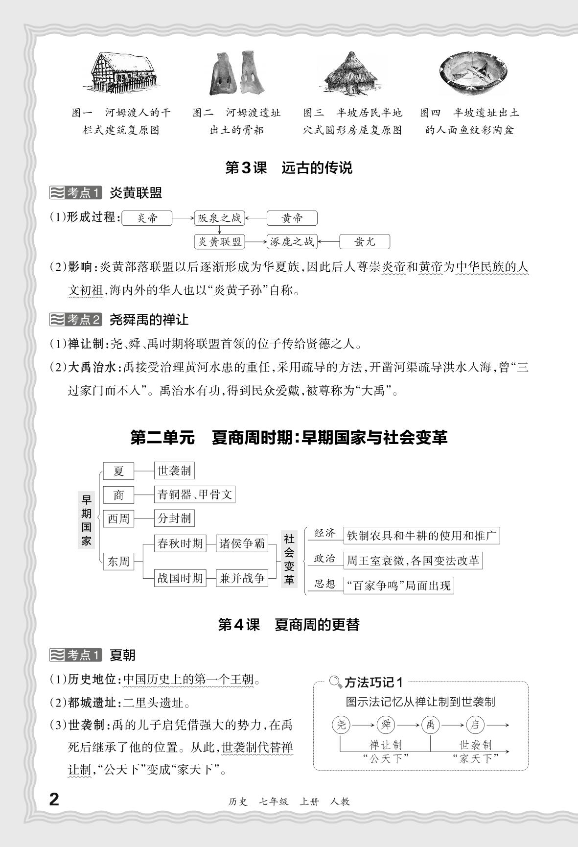 2023秋上册七年级历史人教版 期末过课本·基础知识梳理 第二单元 夏商周时期:早期国家与社会变革