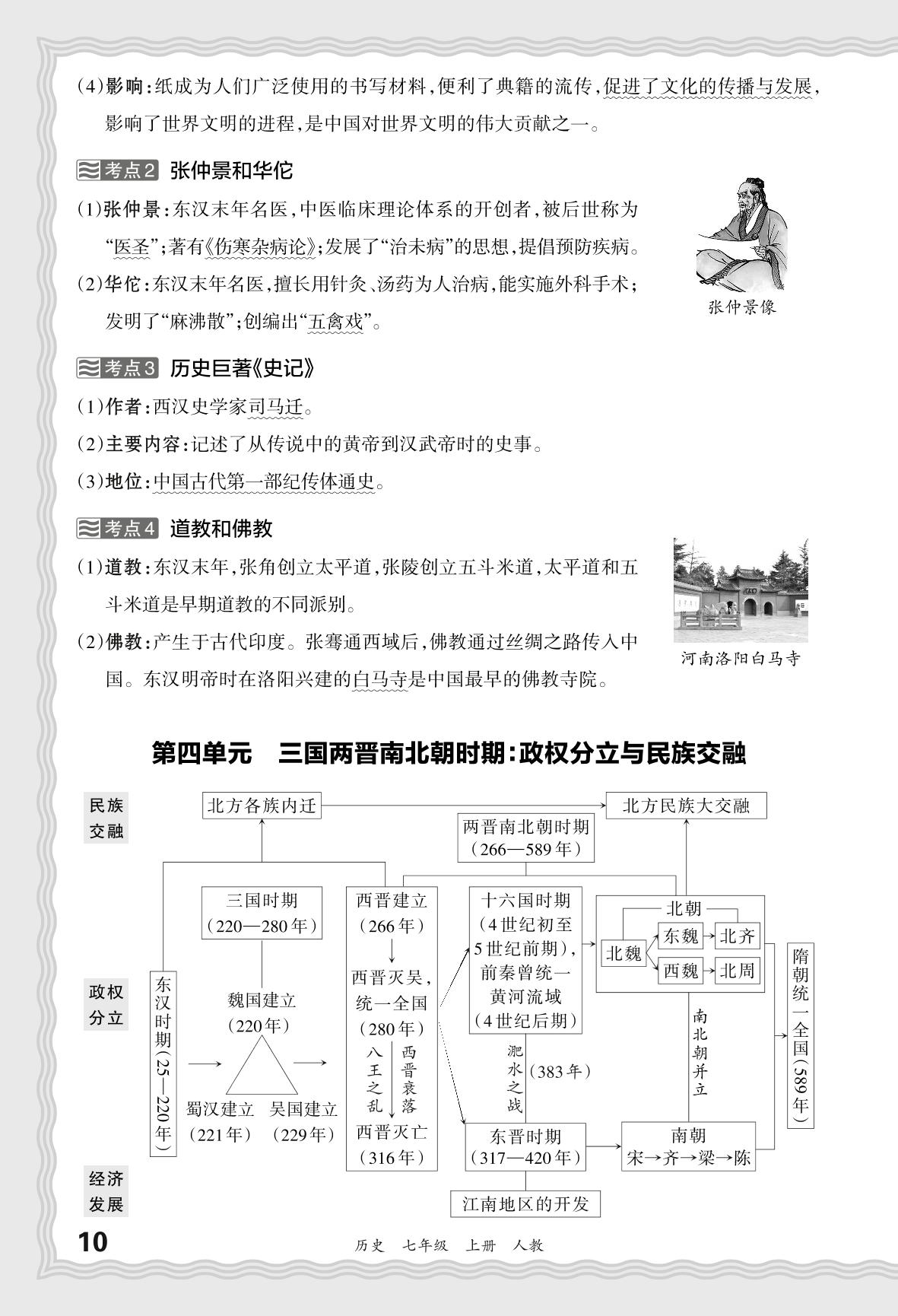 2023秋上册七年级历史人教版 期末过课本·基础知识梳理 第四单元 三国两晋南北朝时期:政权分立与民族交融