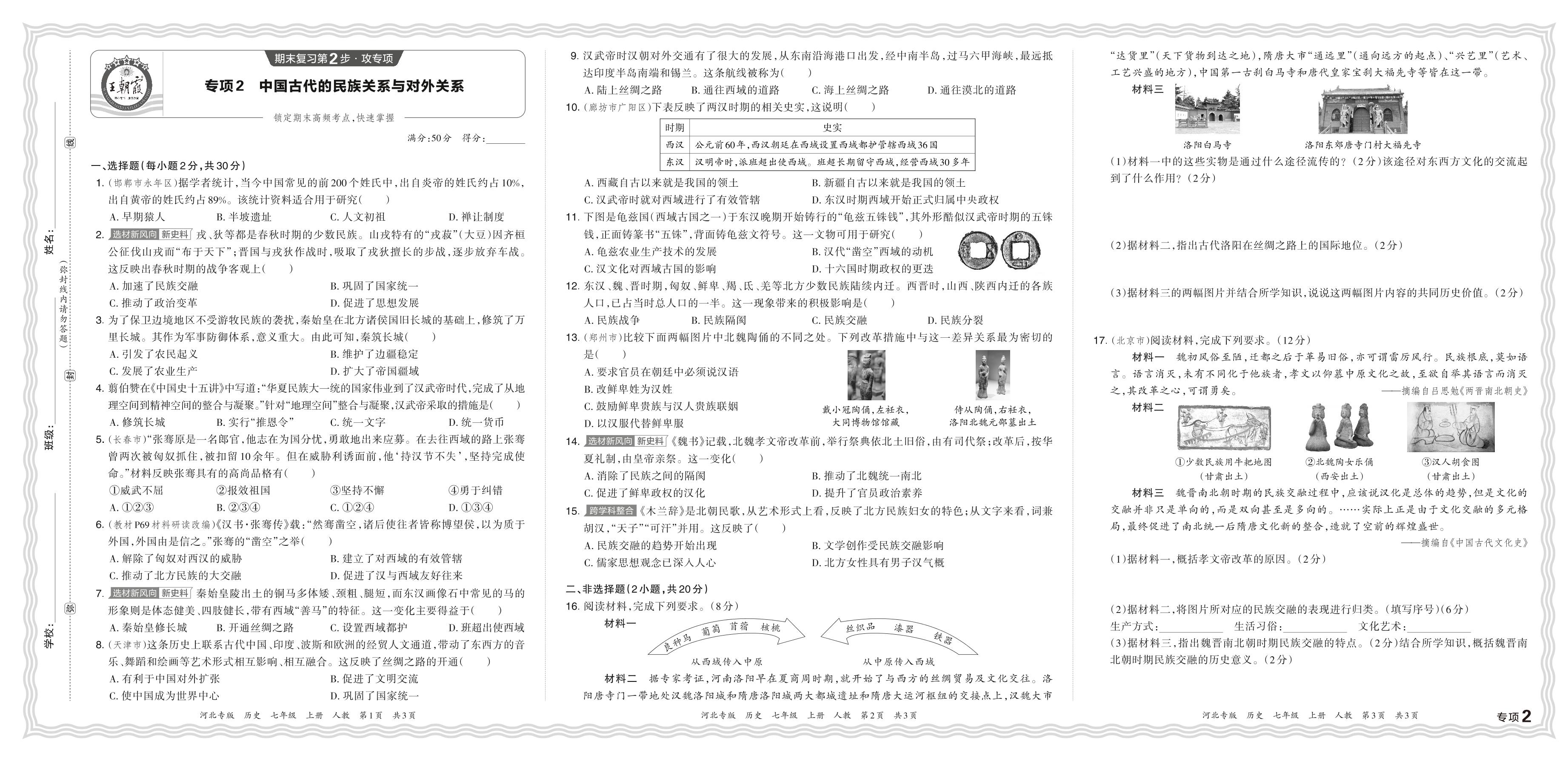 2023秋上册七年级历史人教版 期末专项卷·中国古代的民族关系与对外关系【2】