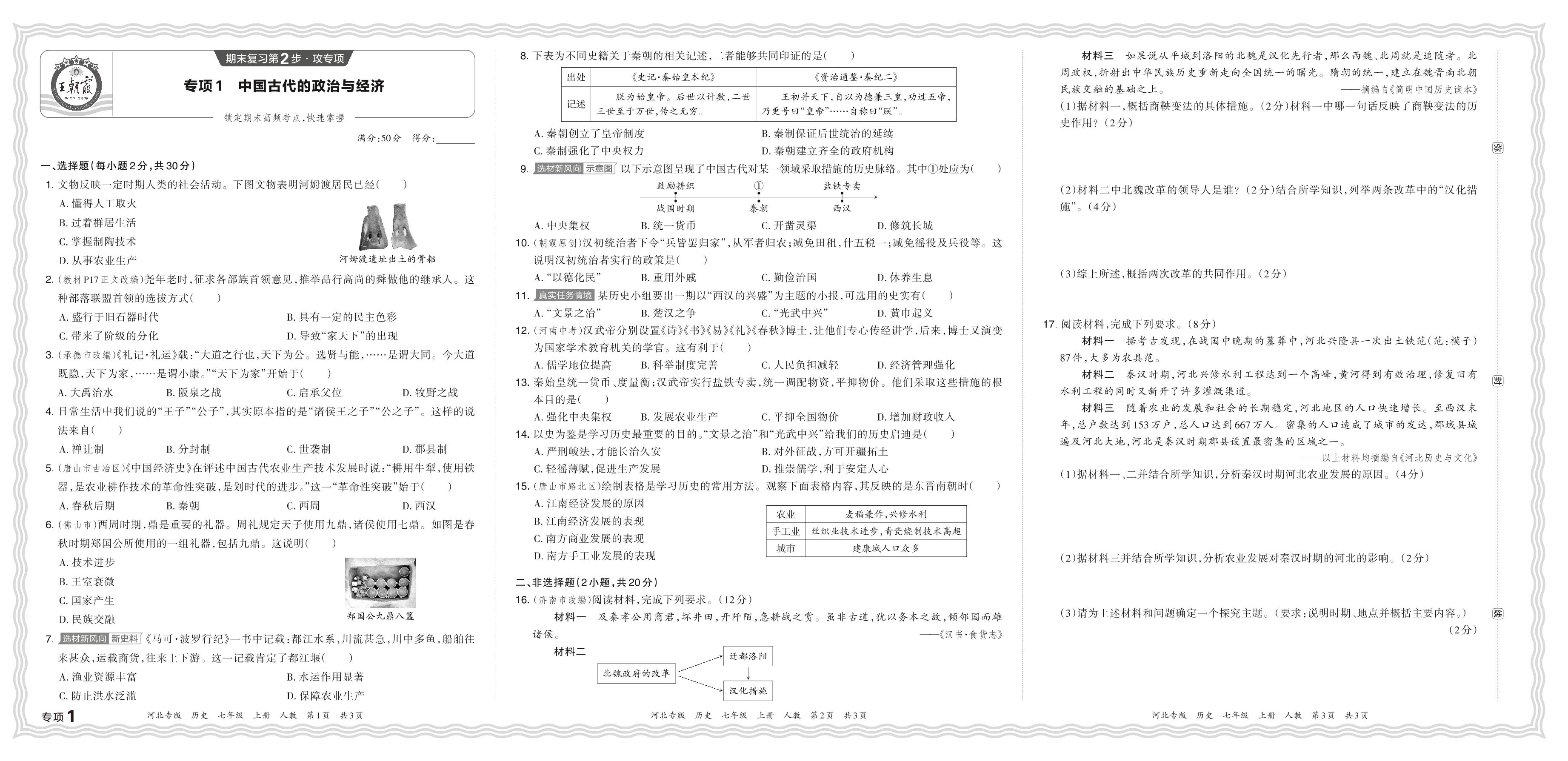 2023秋上册七年级历史人教版 期末专项卷·中国古代的政治与经济【1】