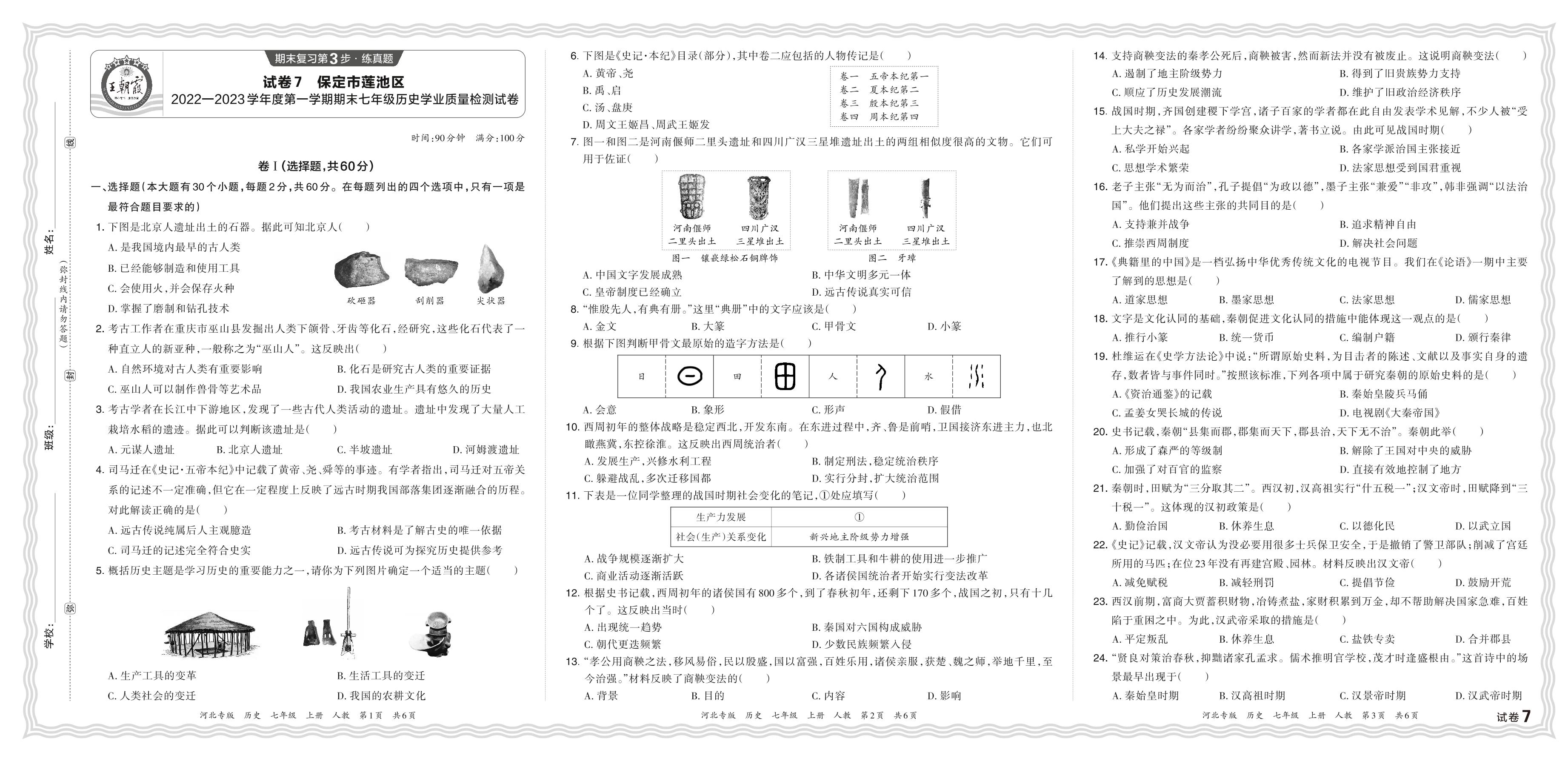 河北省保定市莲池区2022—2023学年度第一学期期末七年级历史学业质量检测试卷(人教版)【7】