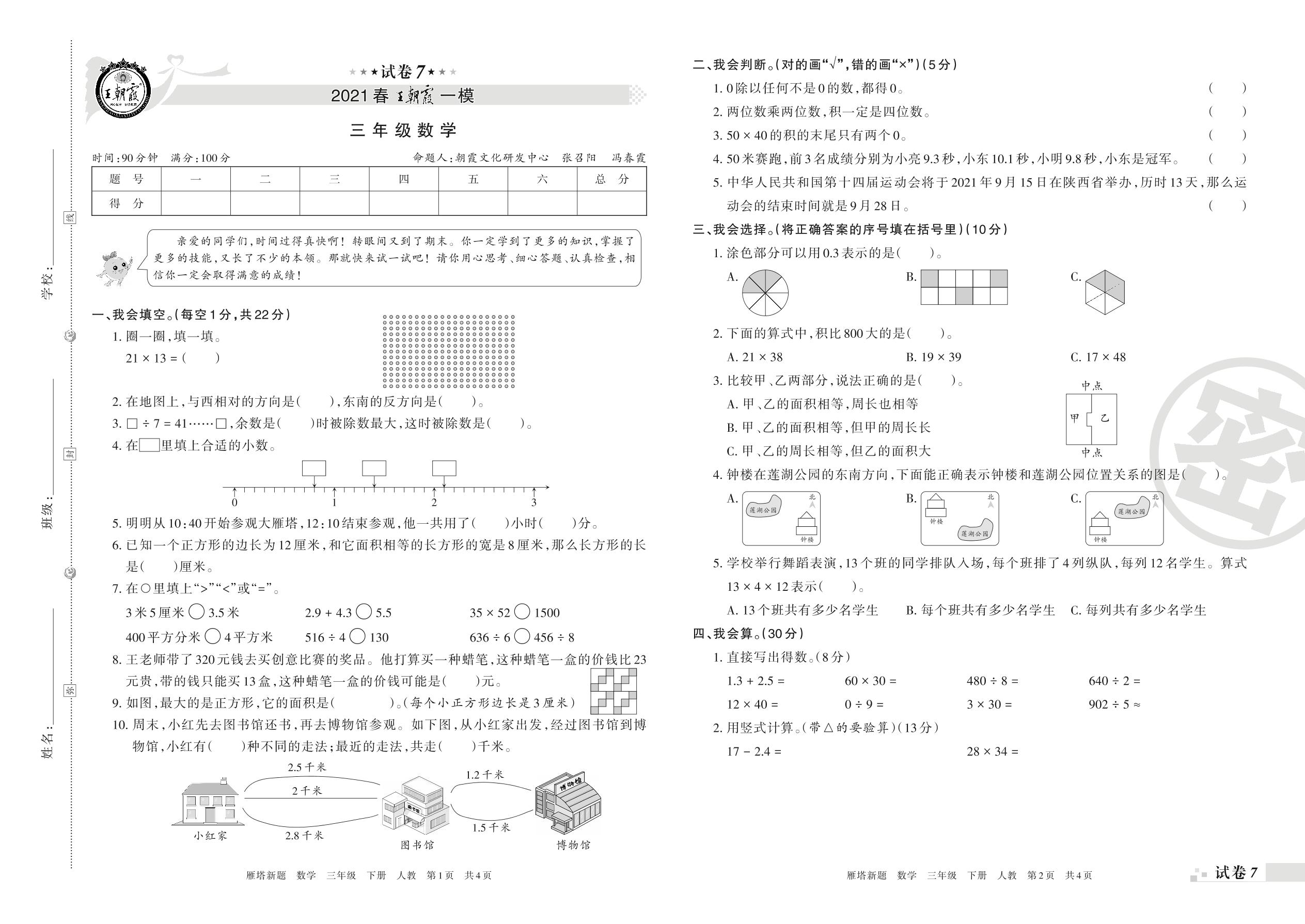 王朝霞期末模拟卷三年级下册数学(人教版)_R21080483850【7】