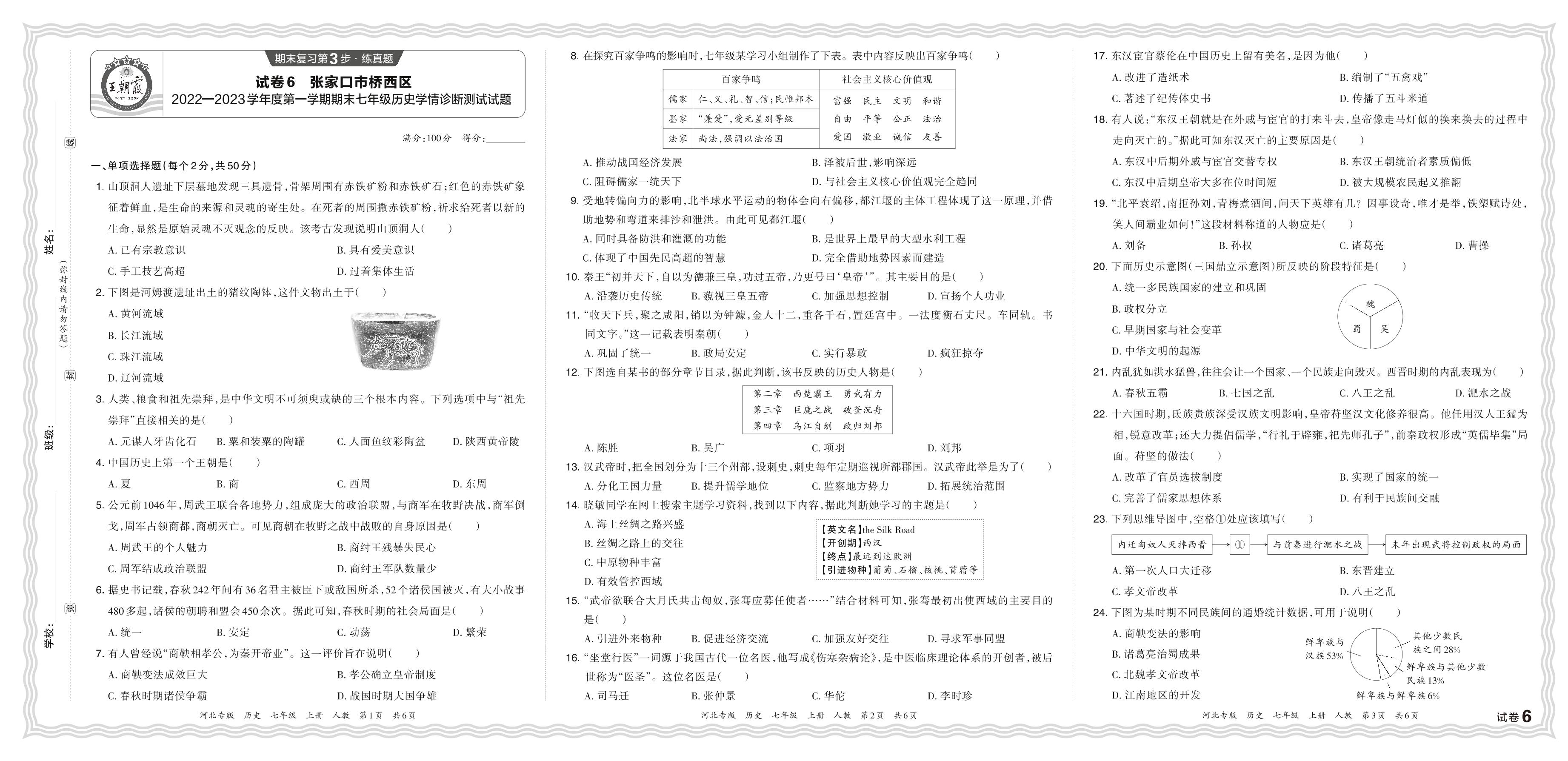 河北省张家口市桥西区2022—2023学年度第一学期期末七年级历史学情诊断测试试题(人教版)【6】