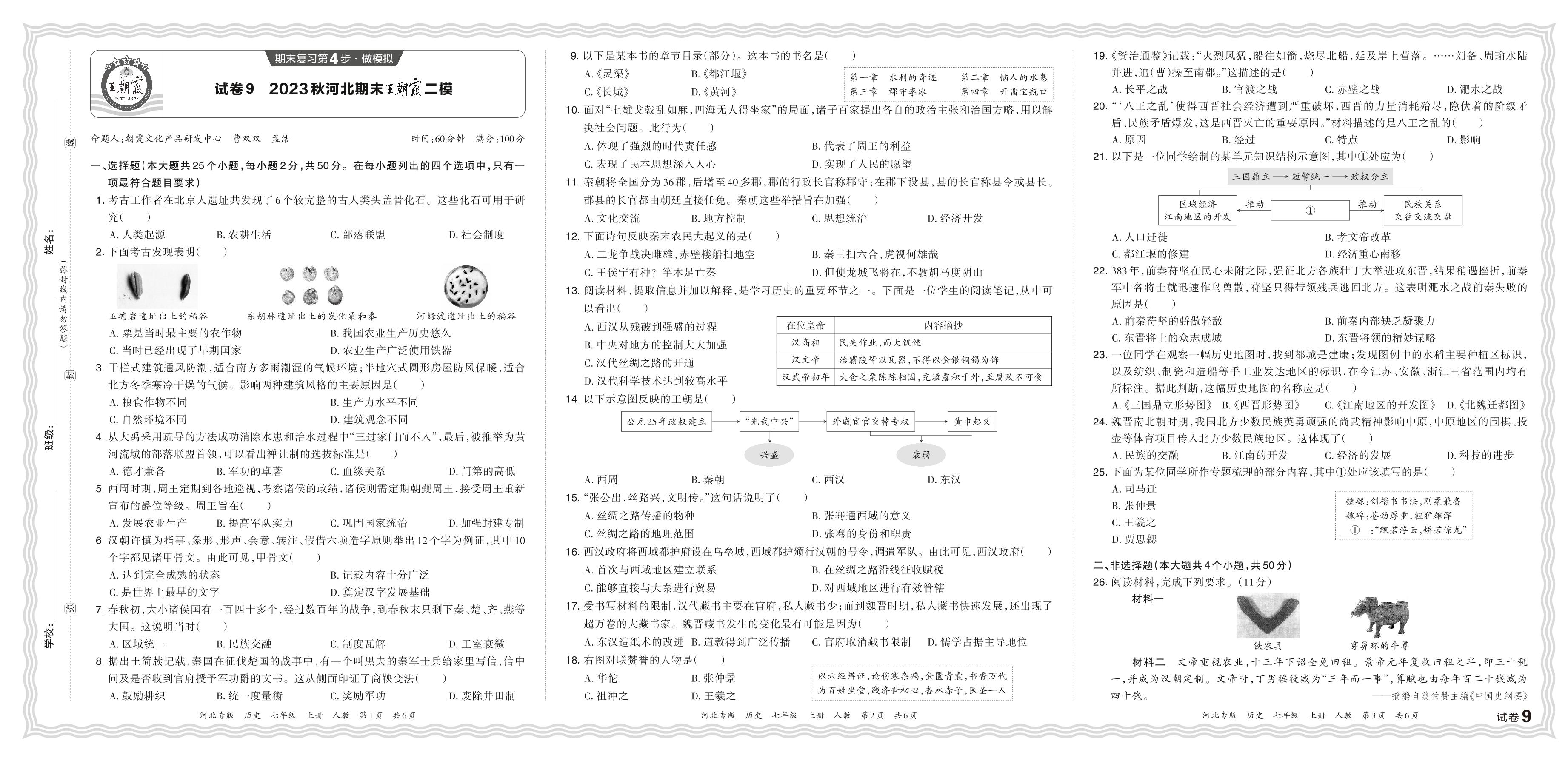 2023秋上册七年级历史人教版 河北期末王朝霞二模