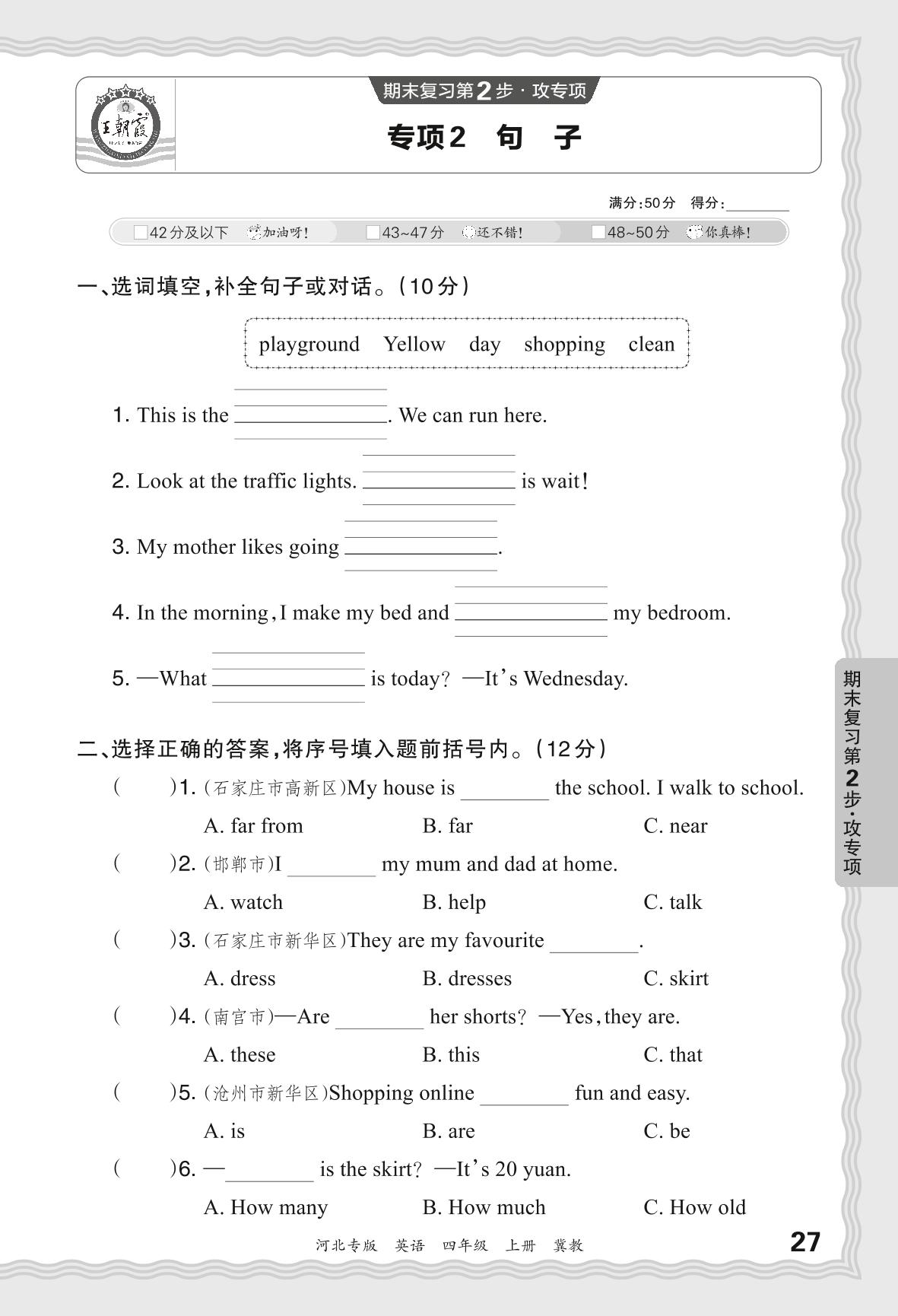 2023秋上册四年级英语冀教版 期末专项·句子【2】