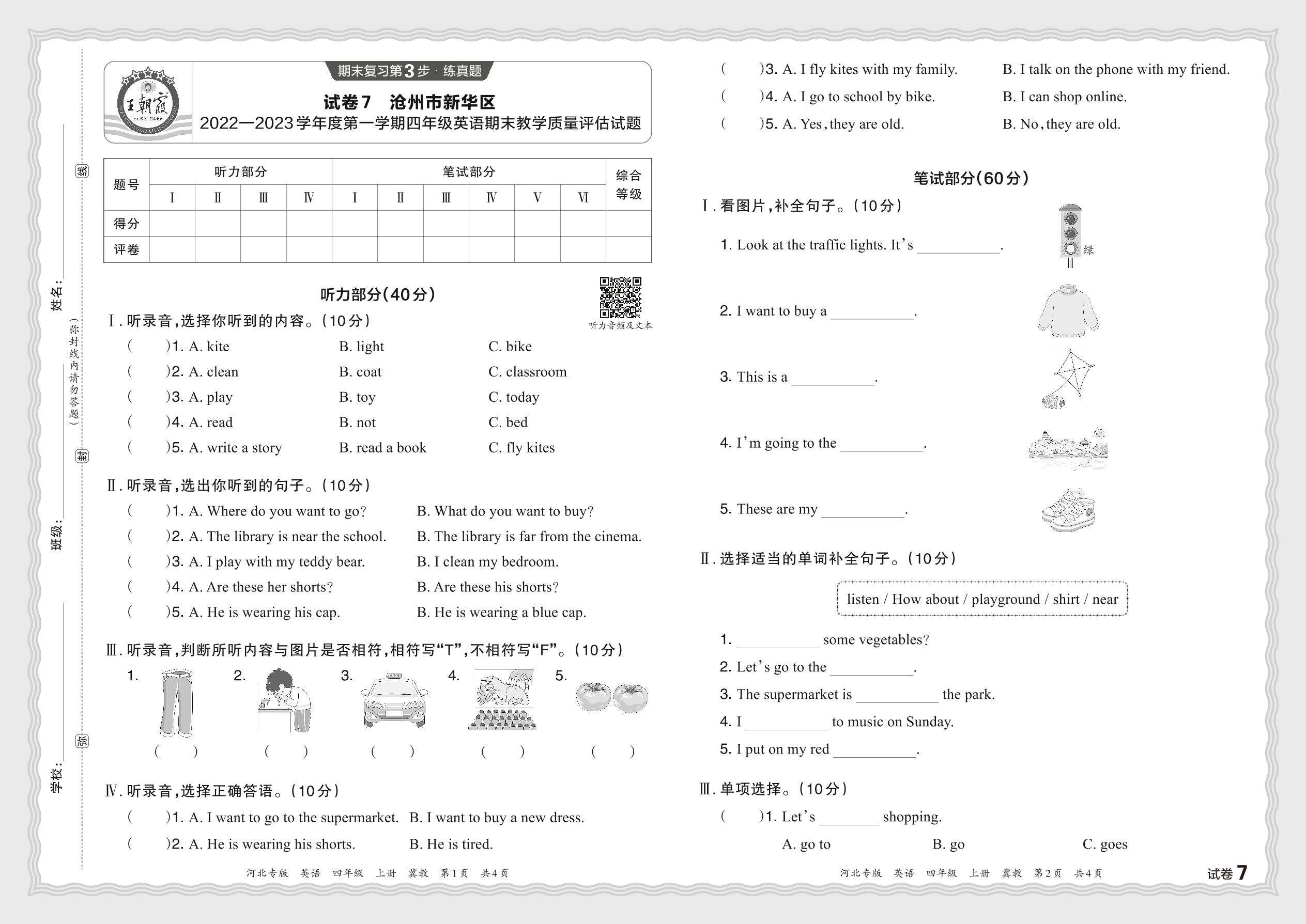 河北省沧州市新华区2022—2023学年度第一学期四年级英语期末教学质量评估试题(冀教版)【7】