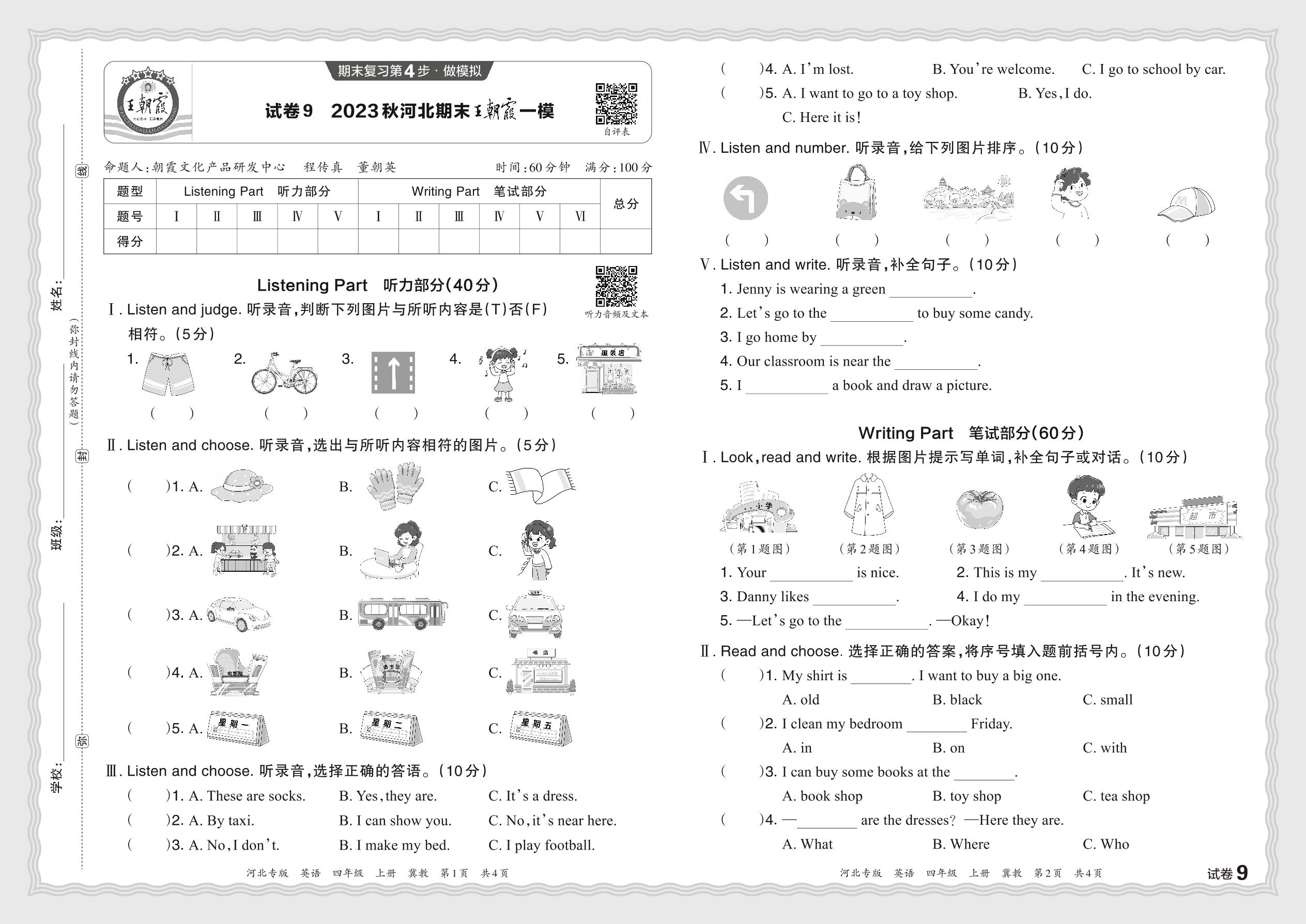 2023秋上册四年级英语冀教版 河北期末王朝霞一模