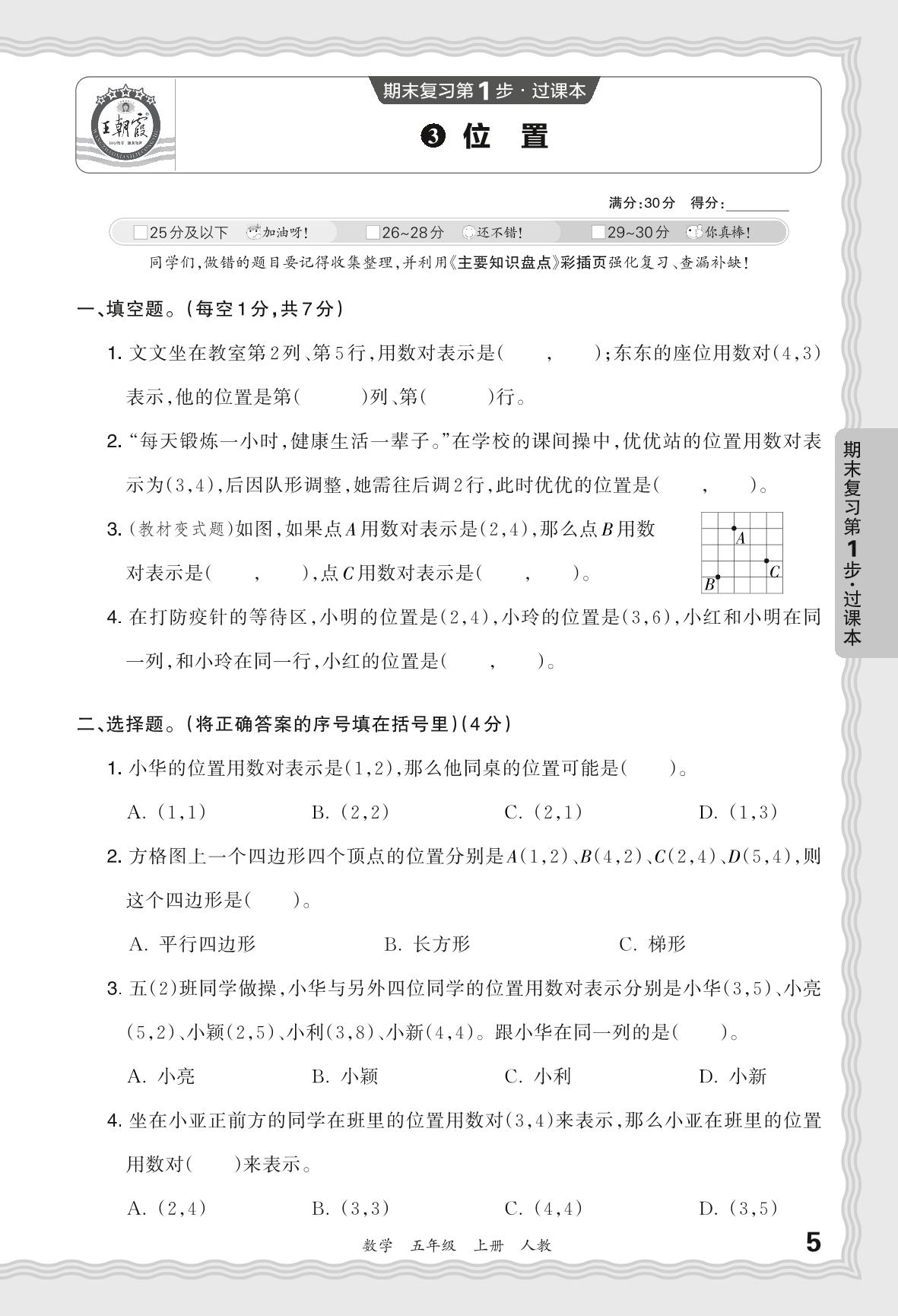 2023秋上册五年级数学人教版 期末过课本QMC版·位置【3】