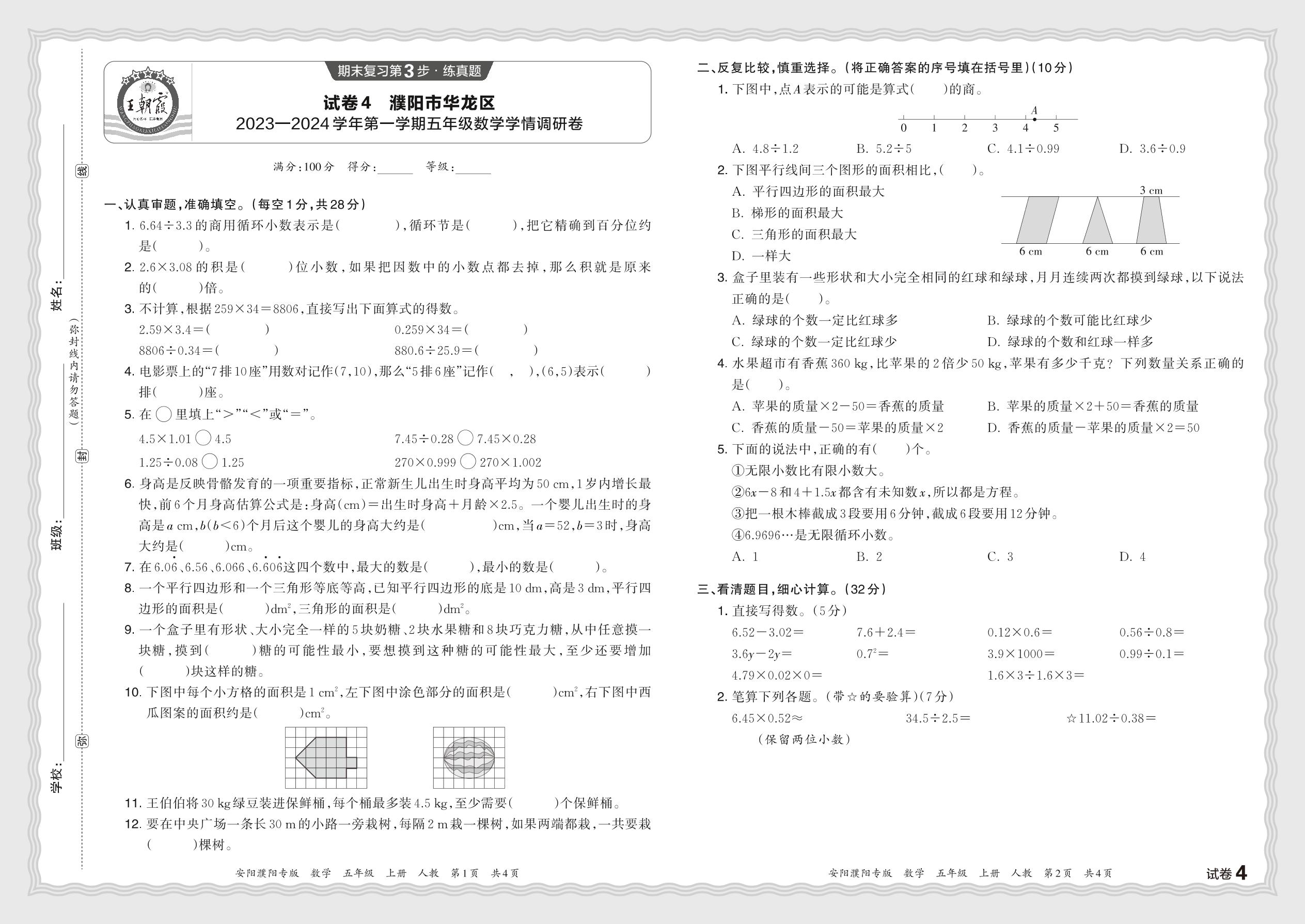 河南省濮阳市华龙区2023—2024学年第一学期学情调研卷(人教版)【4】