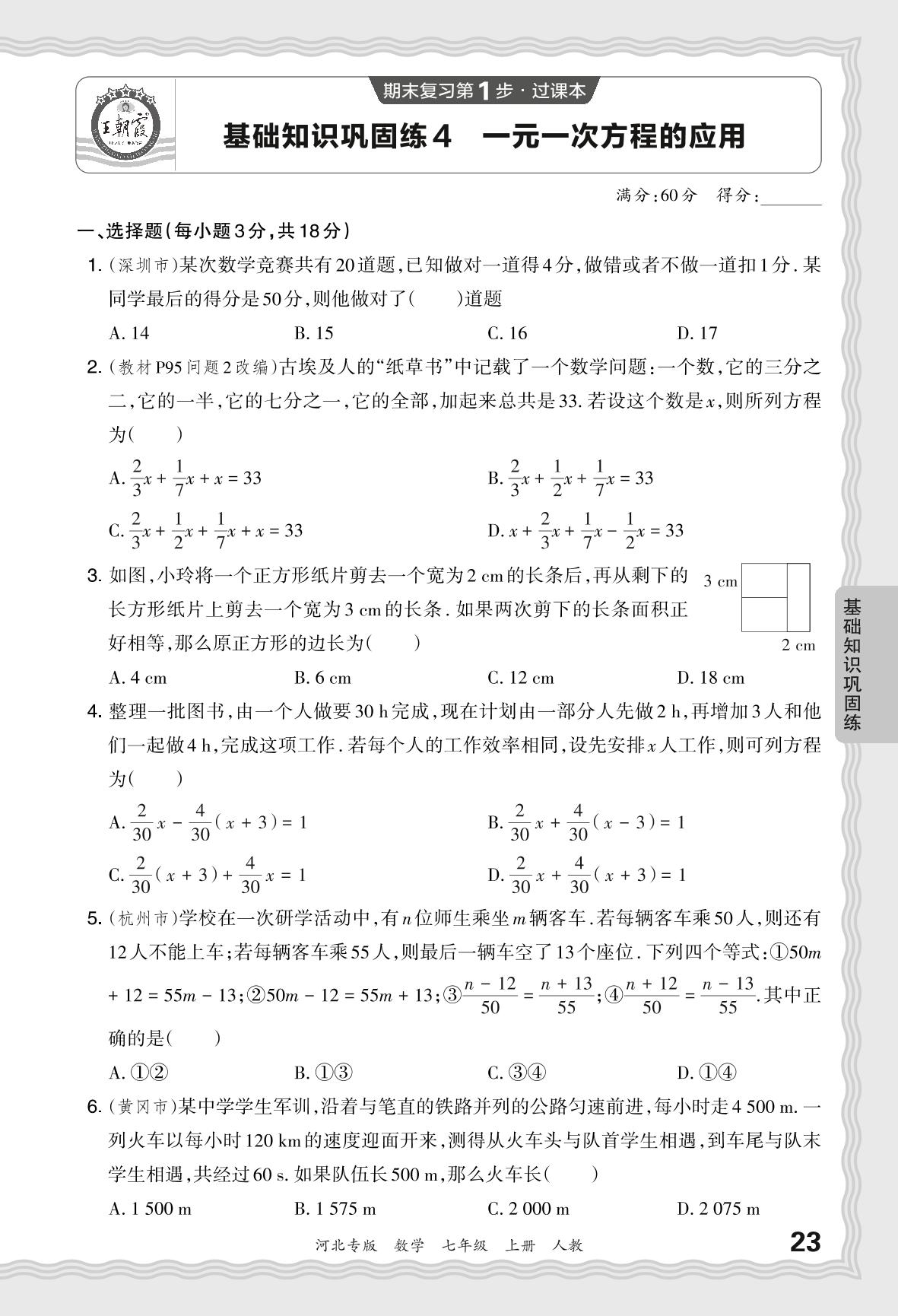 2023秋上册七年级数学人教版 期末过课本·基础知识巩固练 一元一次方程的应用_R231124153644513【4】