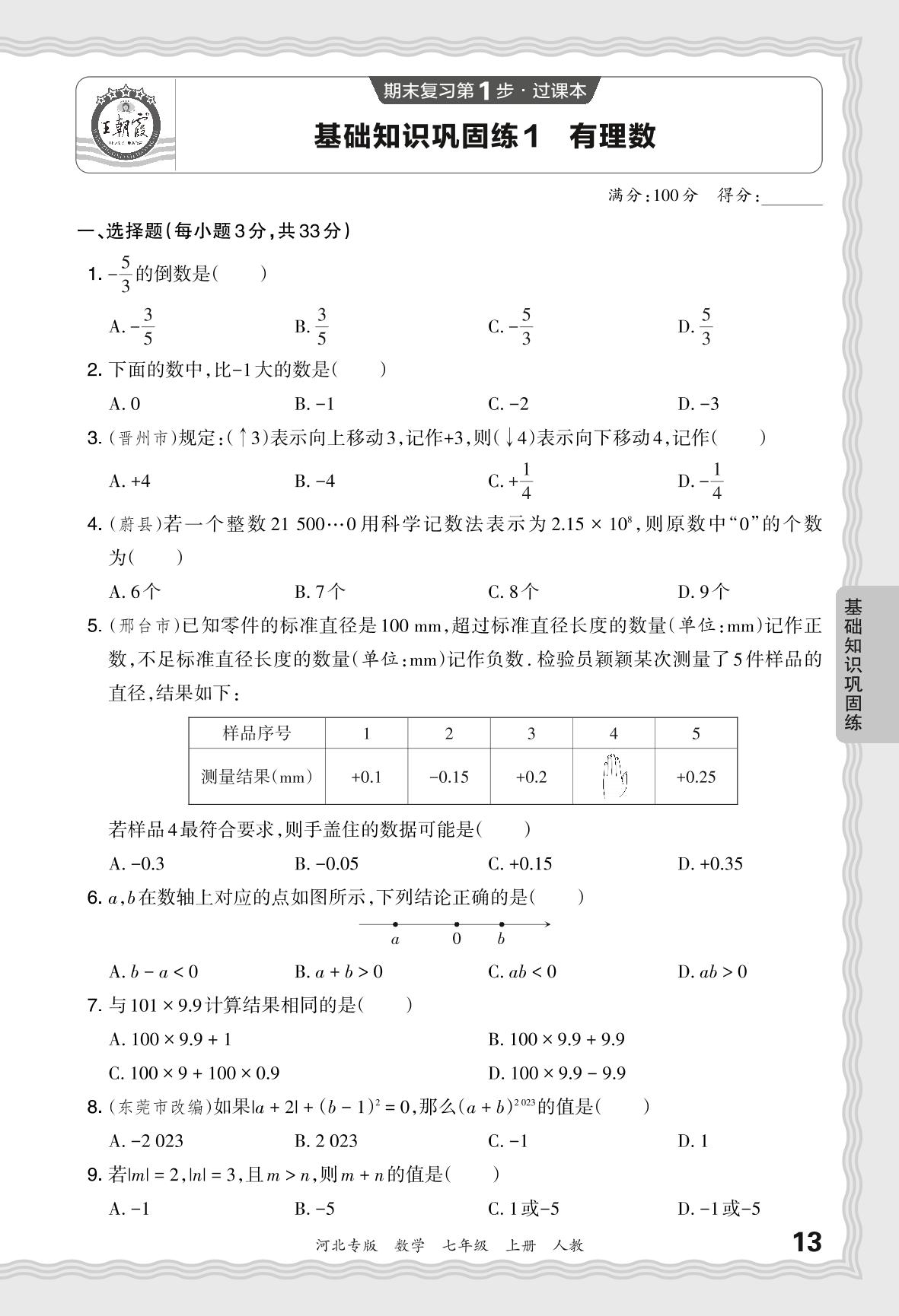 2023秋上册七年级数学人教版 期末过课本·基础知识巩固练 有理数_R231124153644814【1】