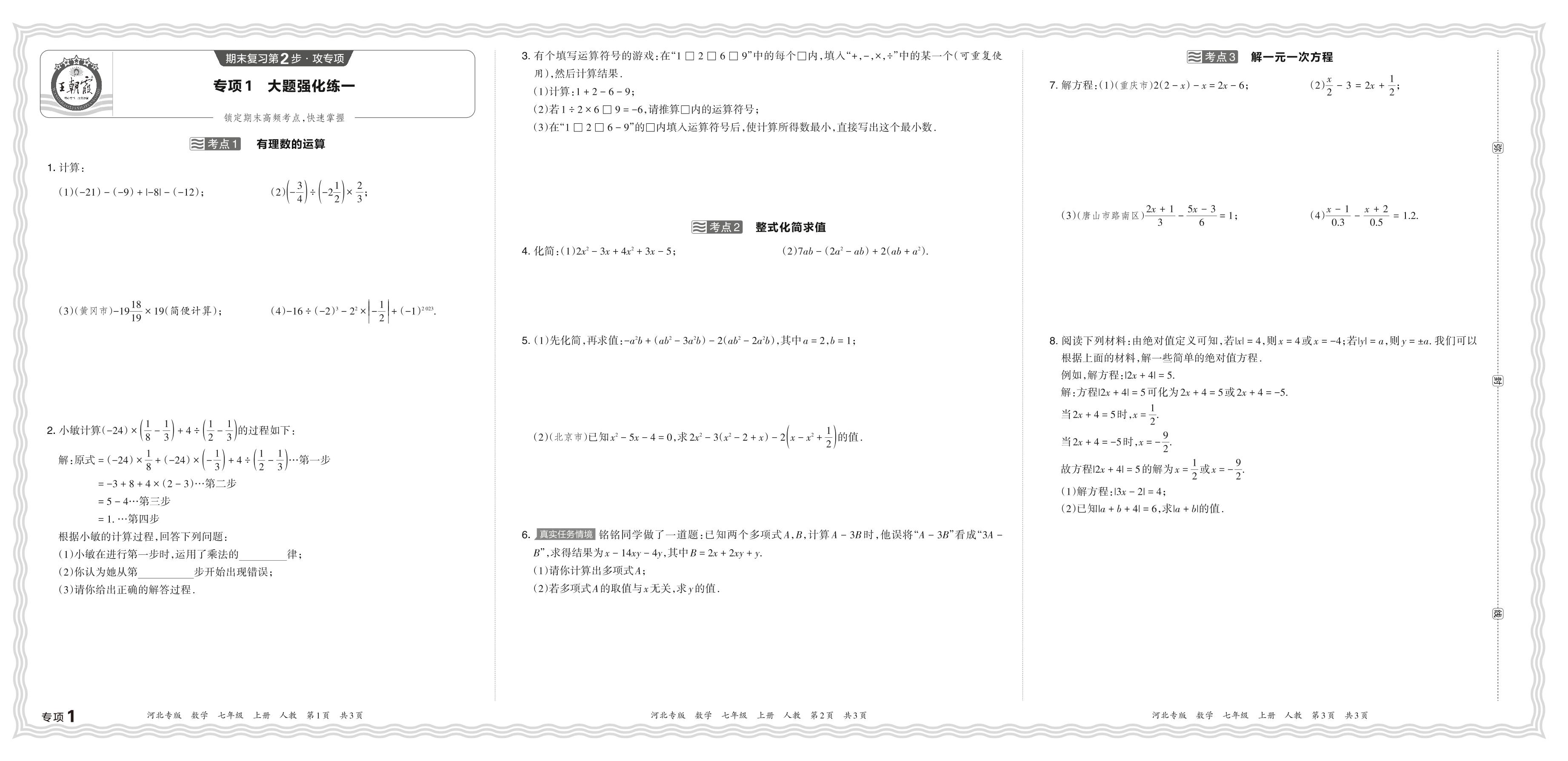 2023秋上册七年级数学人教版 期末专项卷·大题强化练一_R231124153647211