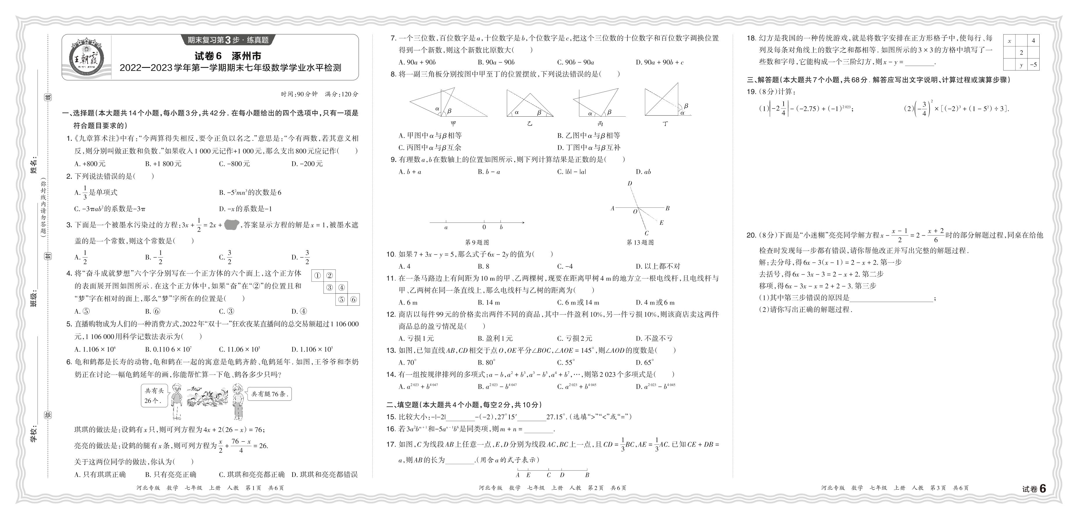 河北省保定市涿州市2022—2023学年第一学期期末七年级数学学业水平检测(人教版)【6】