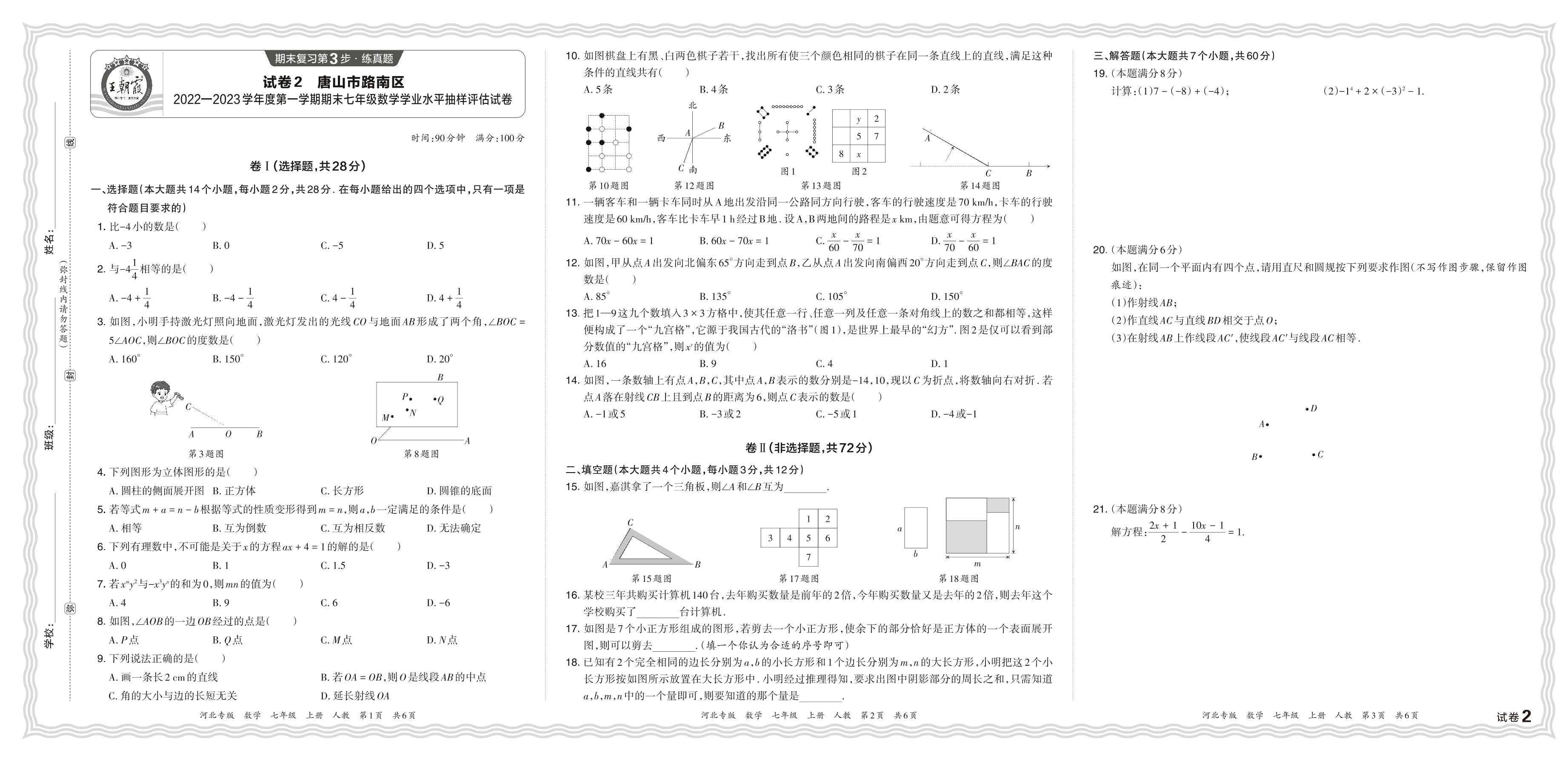 河北省唐山市路南区2022—2023学年度第一学期期末七年级数学学业水平抽样评估试卷(人教版)【2】