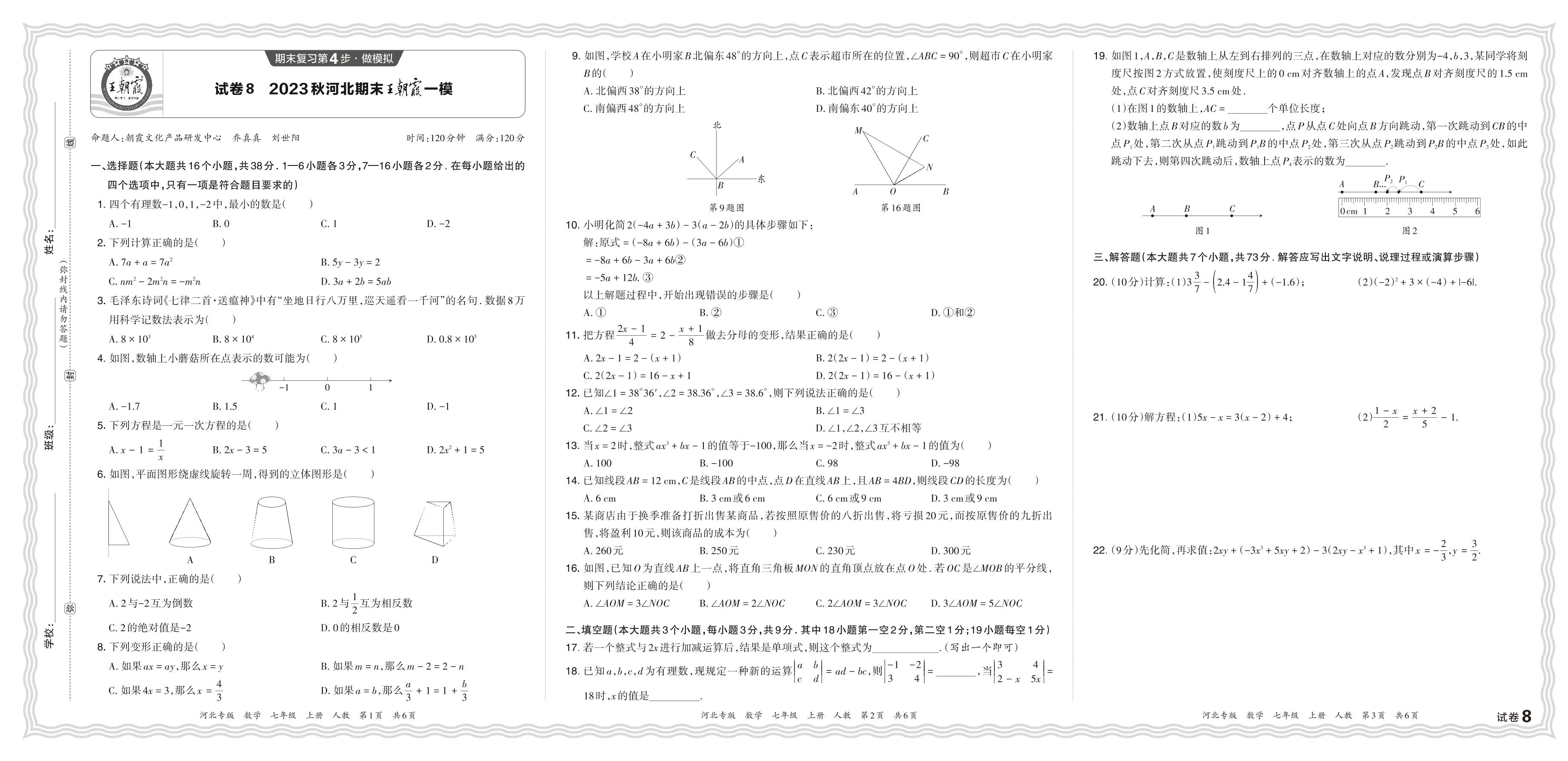 2023秋上册七年级数学人教版 河北期末王朝霞一模