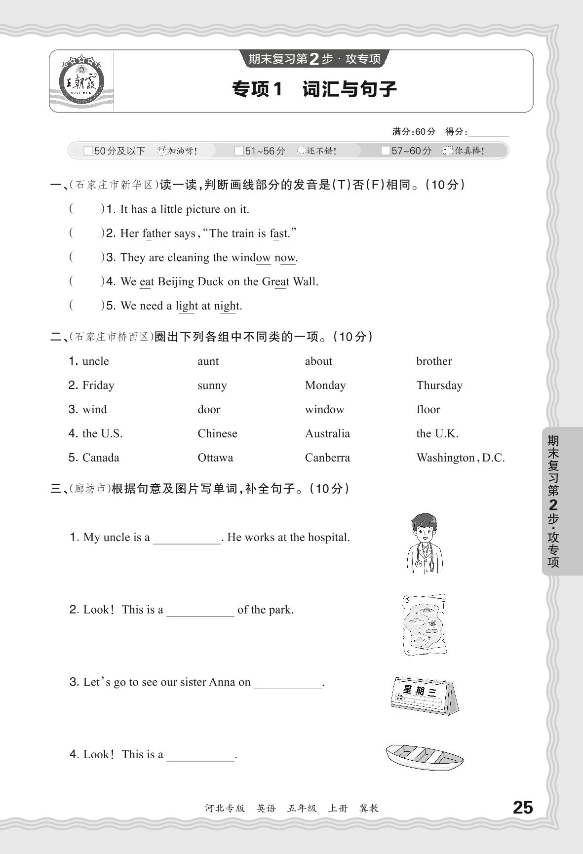2023秋上册五年级英语冀教版 期末专项·词汇与句子【1】