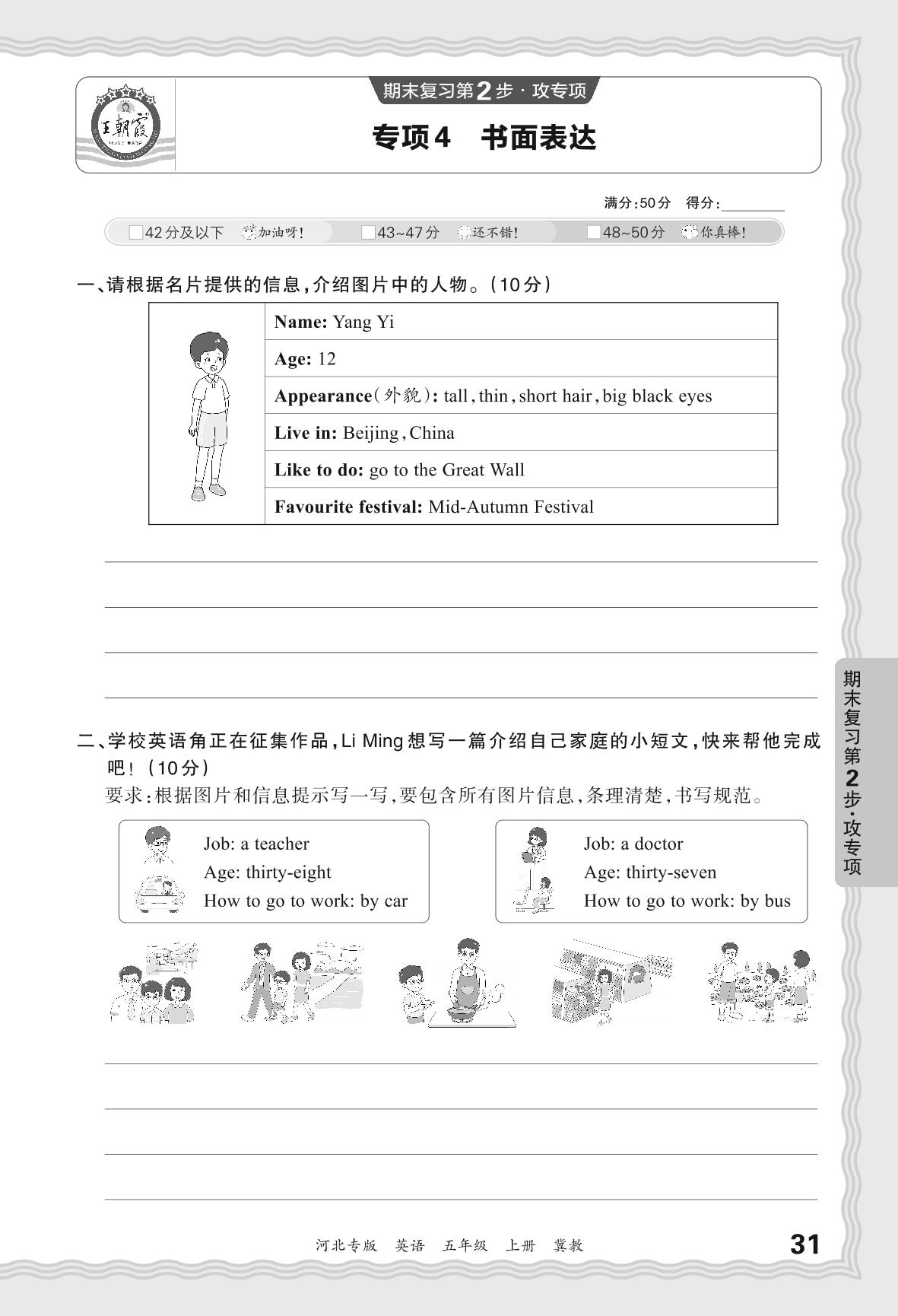 2023秋上册五年级英语冀教版 期末专项·书面表达【4】