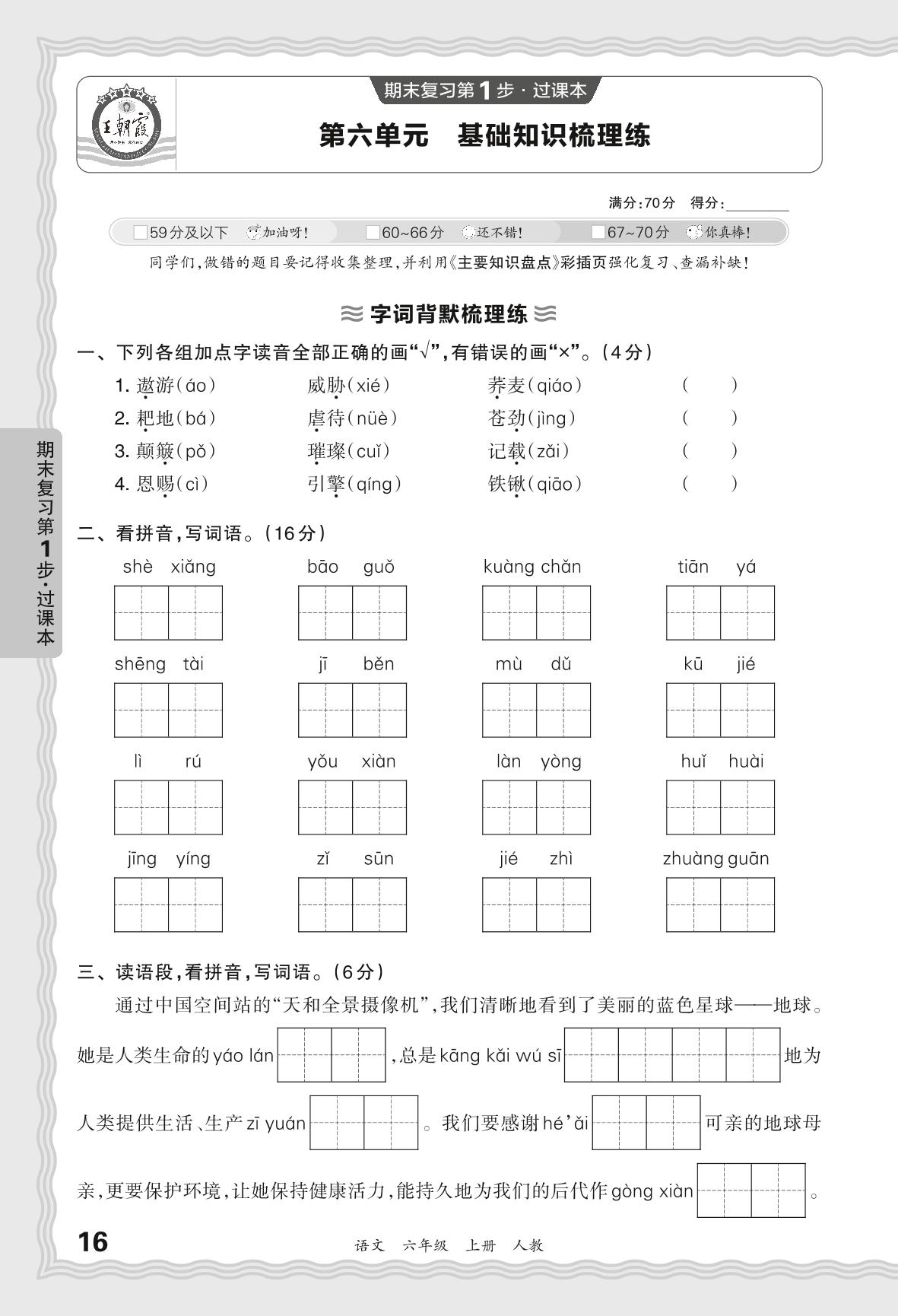 2023秋上册六年级语文人教版 期末过课本QMB版·第六单元 基础知识梳理练