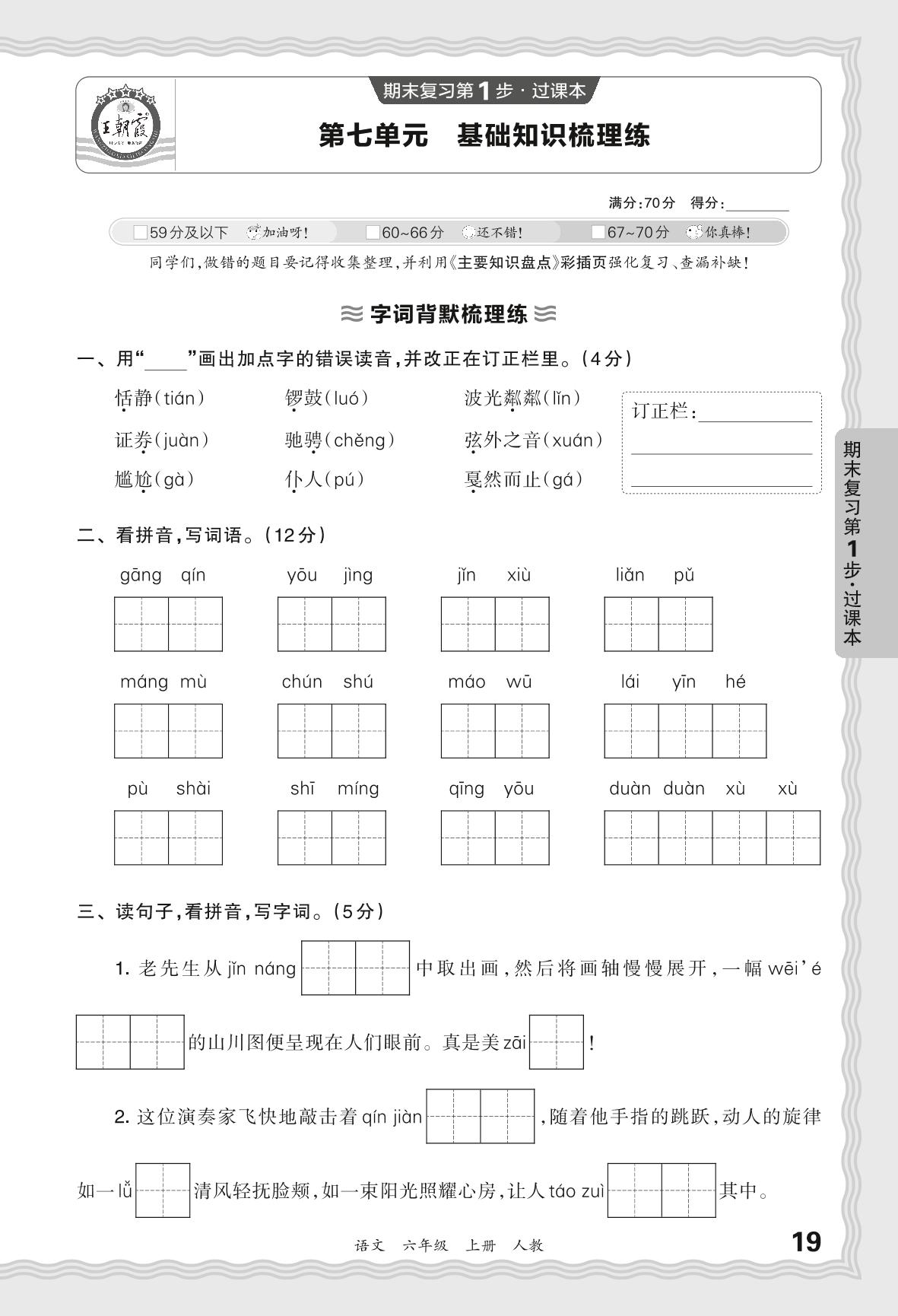 2023秋上册六年级语文人教版 期末过课本QMB版·第七单元 基础知识梳理练