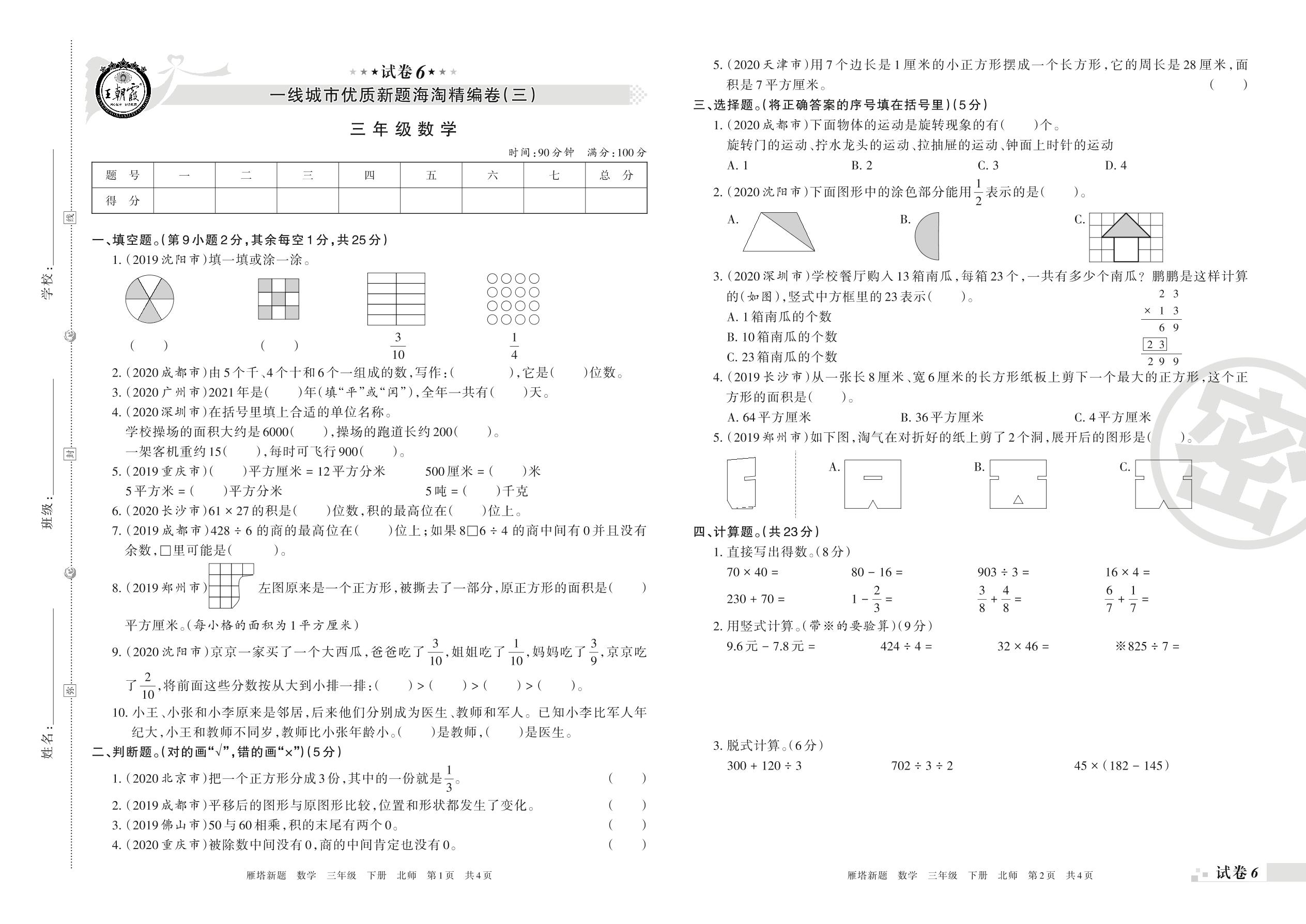 王朝霞海淘期末精编卷三年级下册数学(北师版)【6】