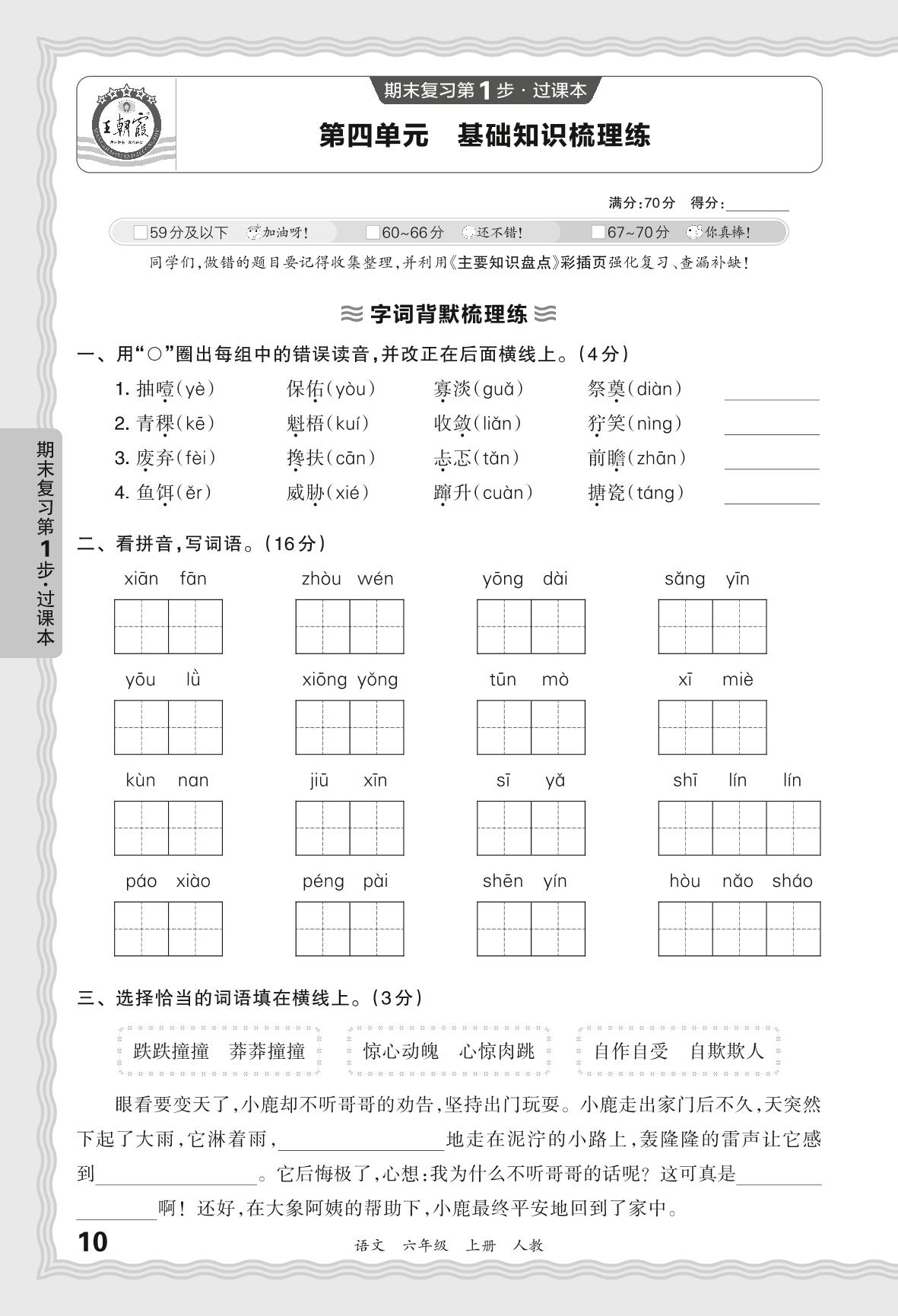 2023秋上册六年级语文人教版 期末过课本QMB版·第四单元 基础知识梳理练