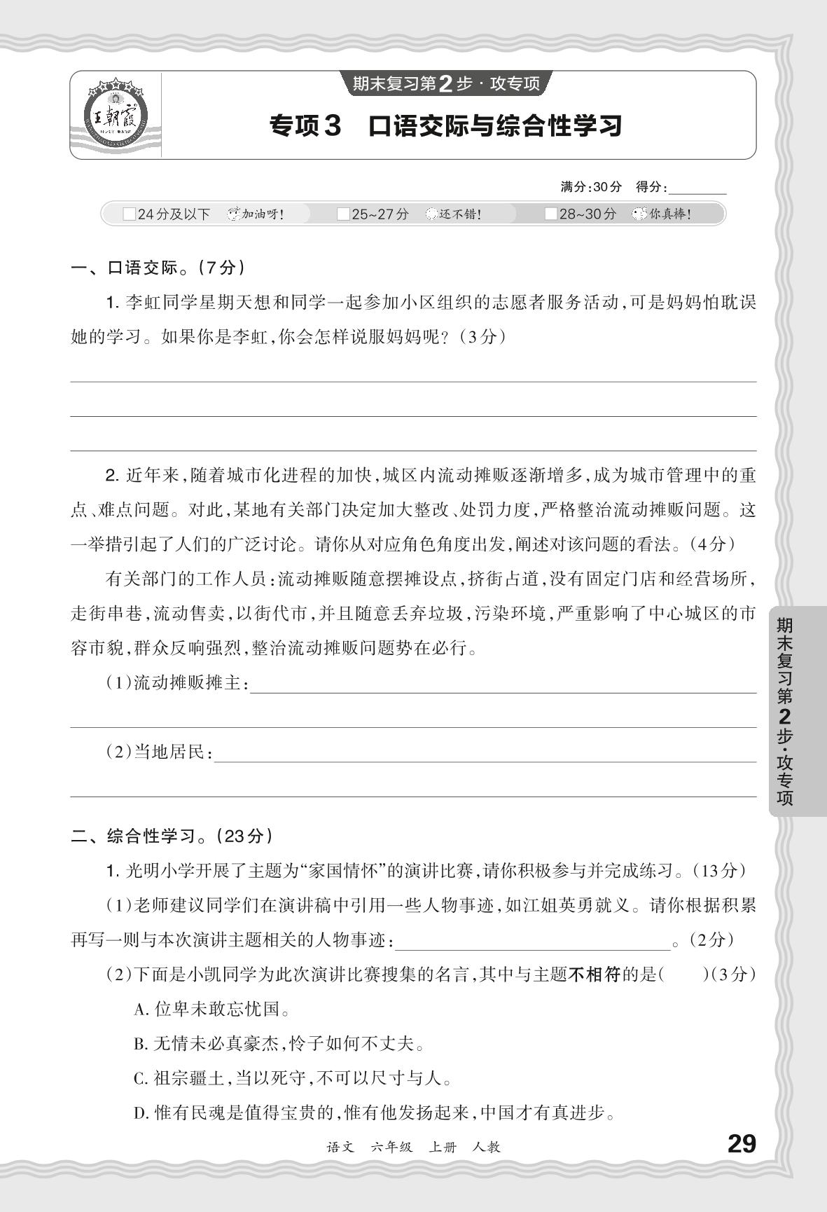 2023秋上册六年级语文人教版 期末专项·口语交际与综合性学习【3】