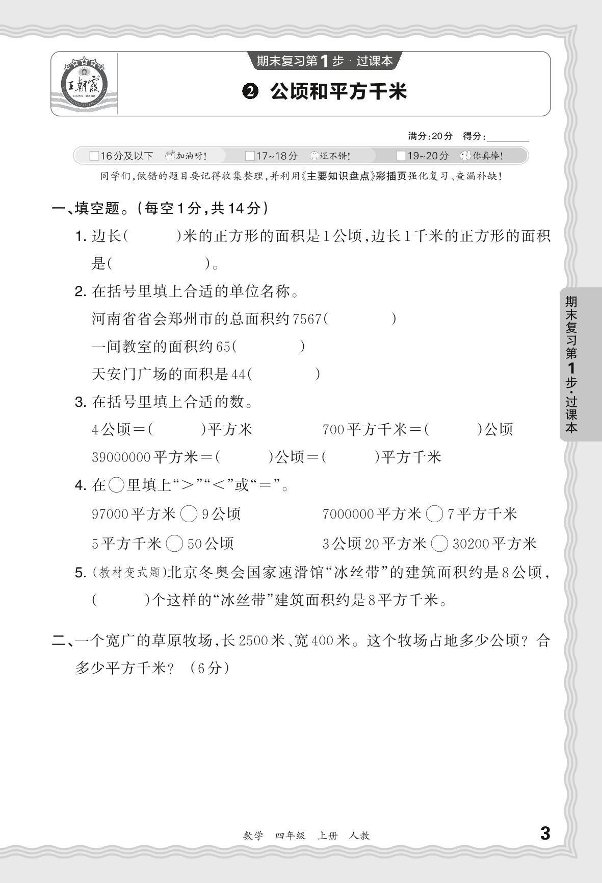 2023秋上册四年级数学人教版 期末过课本QMC版·公顷和平方千米【2】