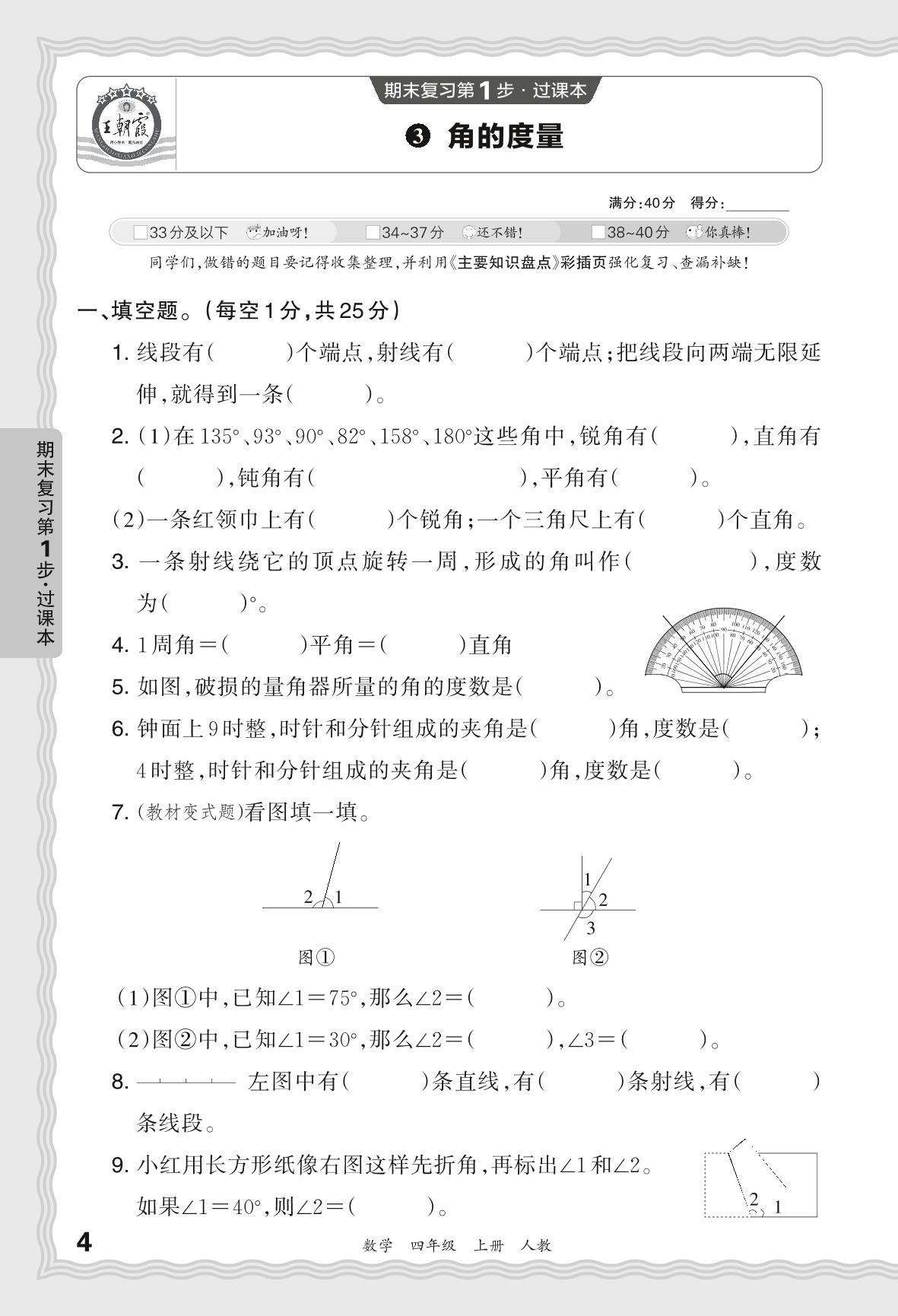 2023秋上册四年级数学人教版 期末过课本QMC版·角的度量【3】