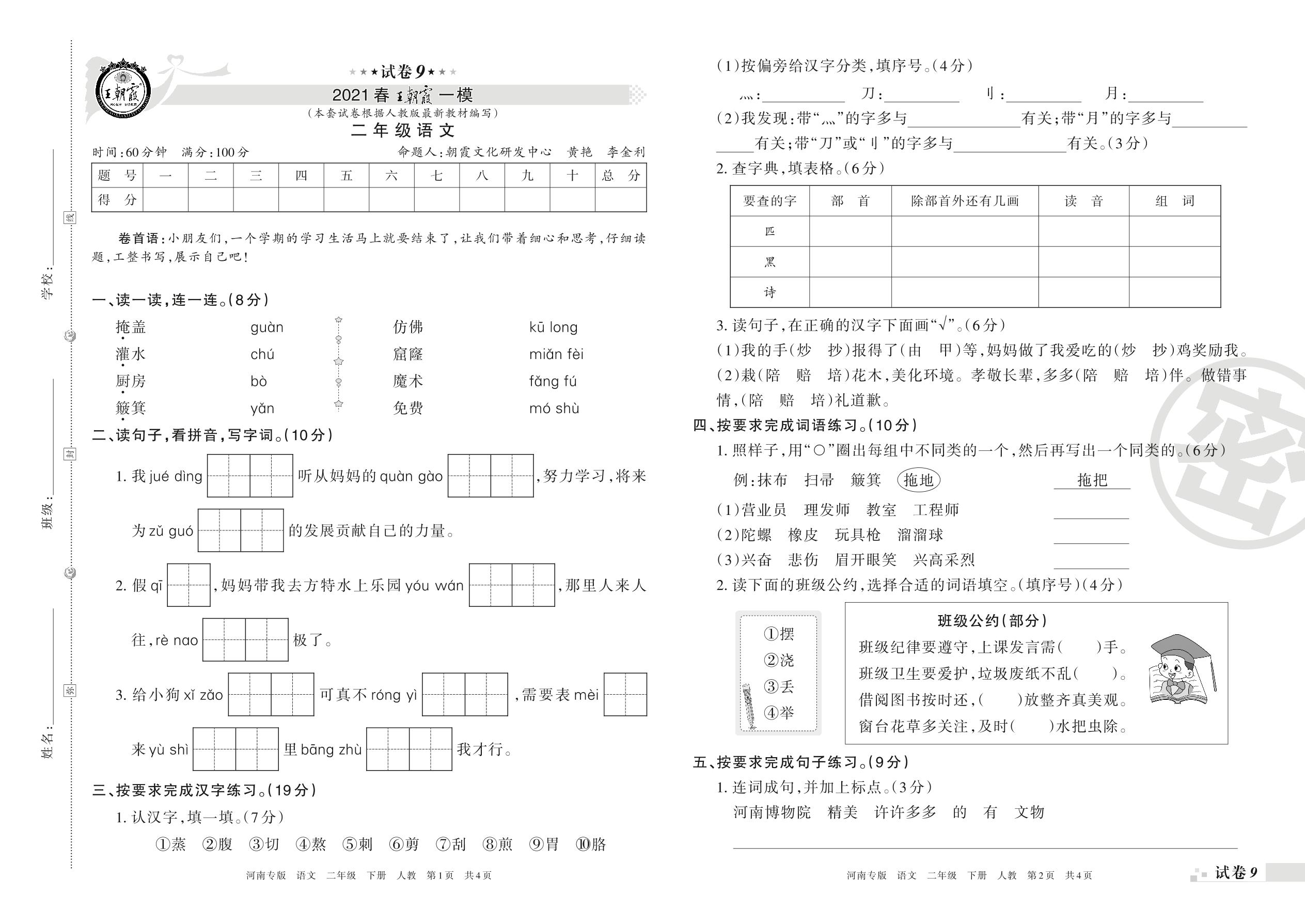 王朝霞期末模拟卷二年级下册语文(人教版)_R21080163832【9】