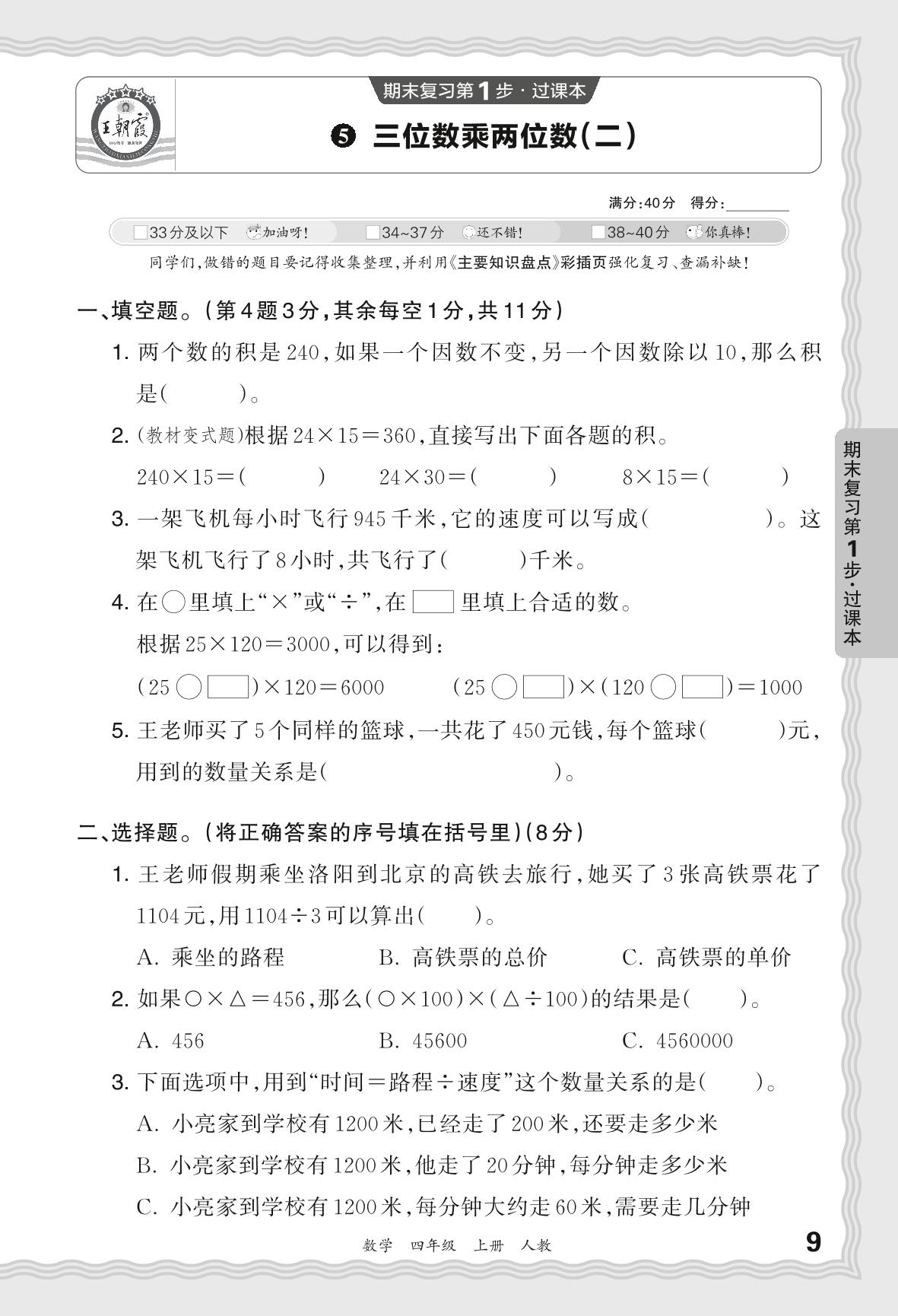 2023秋上册四年级数学人教版 期末过课本QMC版·三位数乘两位数(二)【5】