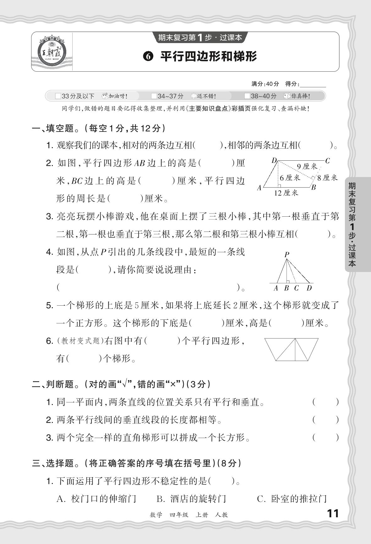2023秋上册四年级数学人教版 期末过课本QMC版·平行四边形和梯形【6】