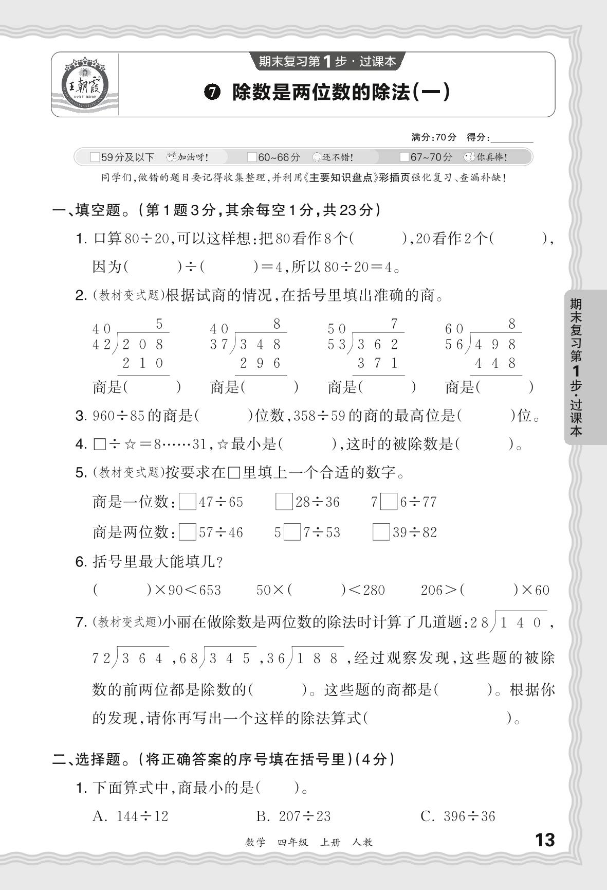 2023秋上册四年级数学人教版 期末过课本QMC版·除数是两位数的除法(一)【7】