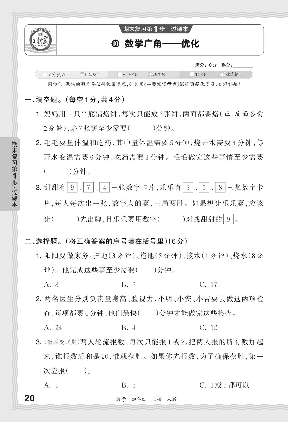 2023秋上册四年级数学人教版 期末过课本QMC版·数学广角——优化【10】